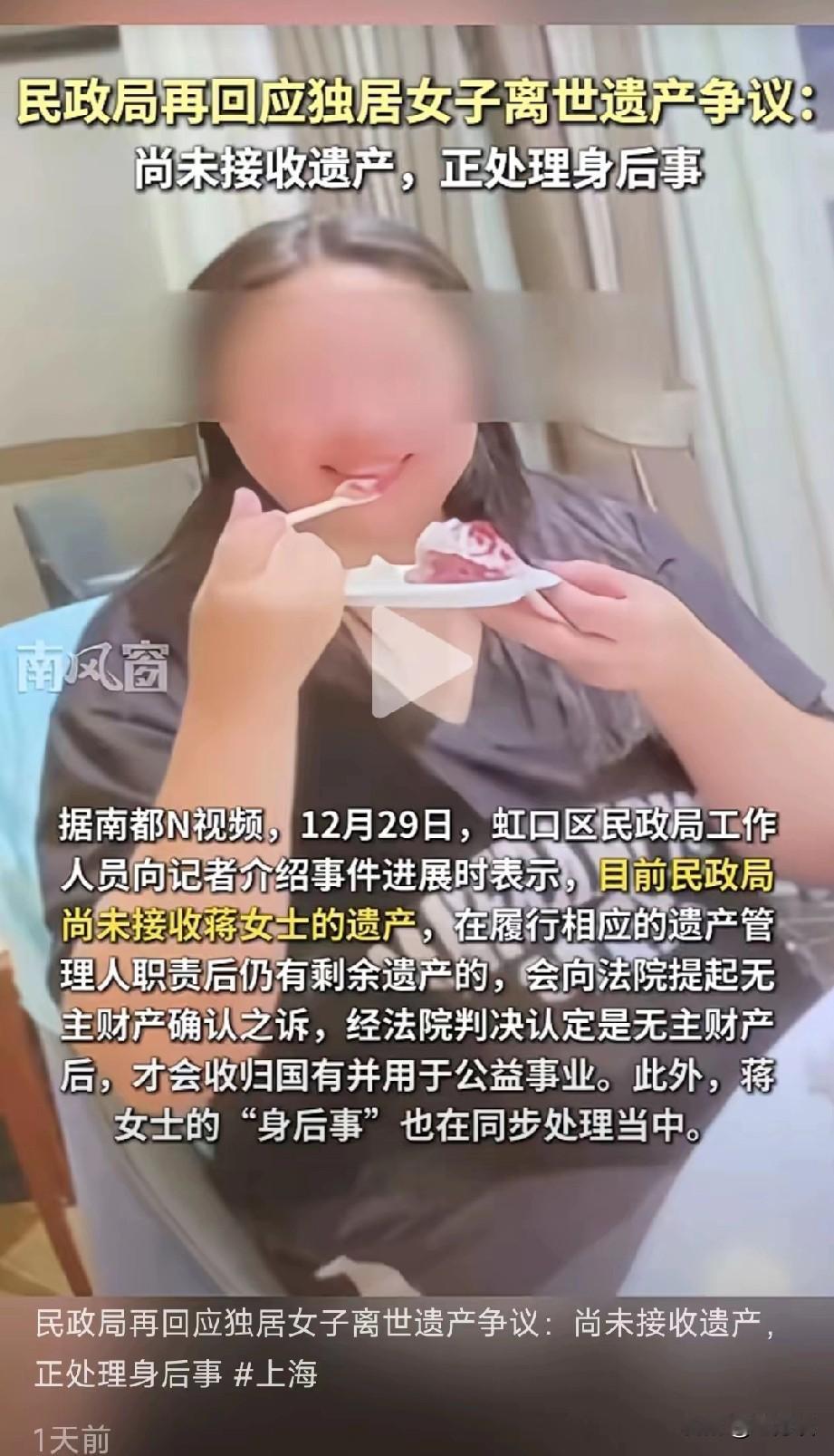 46 岁未婚未育的女子突发疾病过世,而她的父母也早就过世了。也就是说她名下没有直系亲属了,她的遗产可能就要就要归入公家了,她的生后事也是由当地民政局帮办,她的遗产如果经过法院确定为无主财产后就是国家的了。这不知让多少丁克家族和没有子女的剩男剩女难以接受,这就是现实。如果没有后代,你生前所有的东西都是国家的。没人送终,没人照顾,你的财产也是公家的。