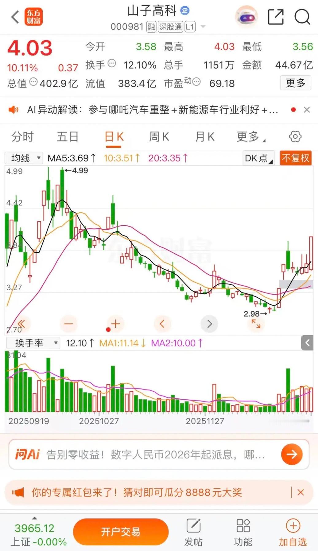 天普股份停牌核查不愧是今年最牛股,山子高科明日涨停天普股份涨停板收盘报收218.02元每股,成交金额2.15亿元,全年涨幅1631.69%,16倍多蛇年最牛股。上涨以来已经至少5次停牌核查了。山子高科涨停板收盘报收4.03元每股,成交金额44.67亿元,明日涨停板4.43元每股。沪指止步10连阳,4000点只能2026再现。把握节奏