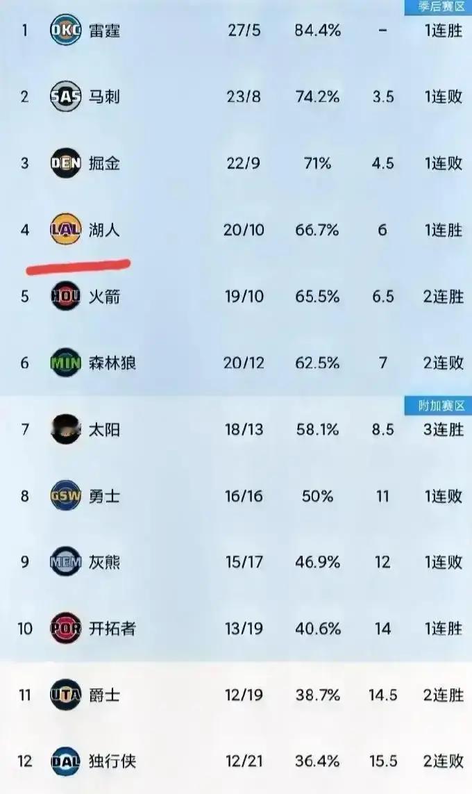 湖人再输就掉出前八! 12月26号打完,火箭15胜12负,湖人16胜15负,中间只隔1.5场。别小看这点差距,赛程一出,湖人真悬了。 火箭接下来十场,对手平均胜率48%,碰的全是马刺、活塞这种垫底队,唯一硬仗是热火。主场又稳,12胜3负,守住前四不是梦。 湖人就惨多了。十场里七成客场,对手平均胜率55%,凯尔特人、雷霆轮番来。客场战绩6胜11负,文森特膝盖还躺着,外线更没人防。 1月30日两队直接碰面。湖人要是再输,差距直奔3场,后面追起来得脱层皮。火箭这边伊森快复出,替补厚度再加码。 我翻了下数据,湖人想不掉队,这波赛程至少得拿5胜5负。可看看对手,真不乐观。火箭只要稳住弱旅,就能坐稳上半区。圣诞后的这波赛程,基本把季后赛门票写了一半。
