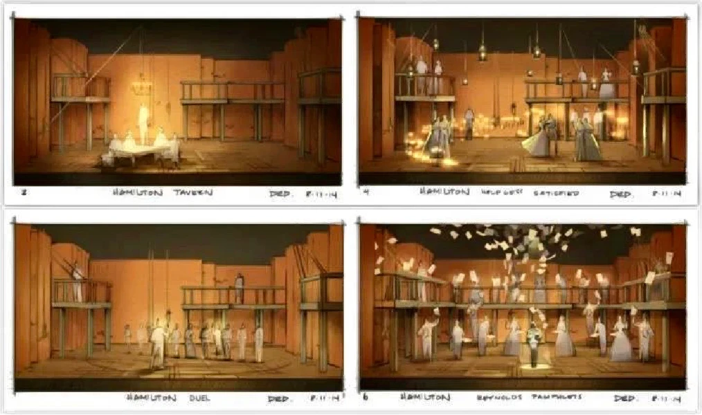 《汉密尔顿》是百老汇爆红音乐剧之一,曾获得16项托尼奖提名,荣获最佳音乐剧在内的11项大奖。其舞美设计由布景设计大师David Korins(大卫·柯林斯)设计。