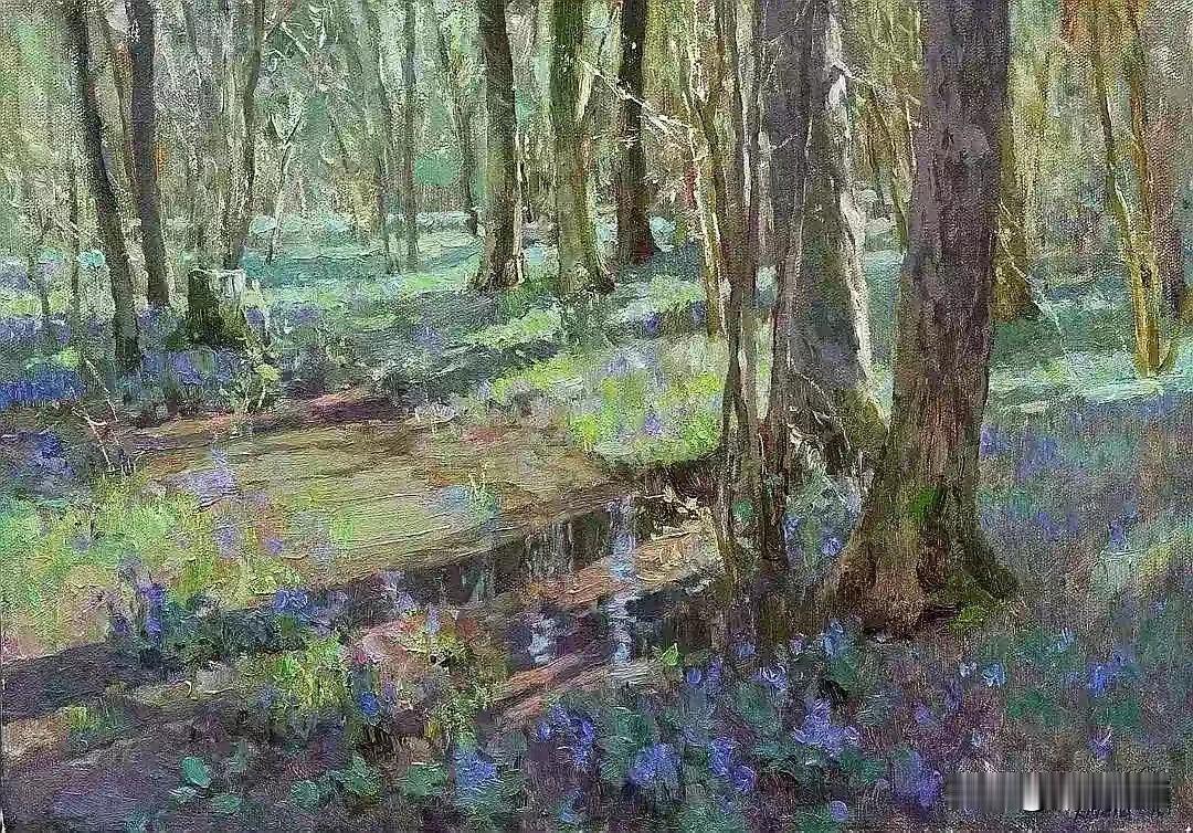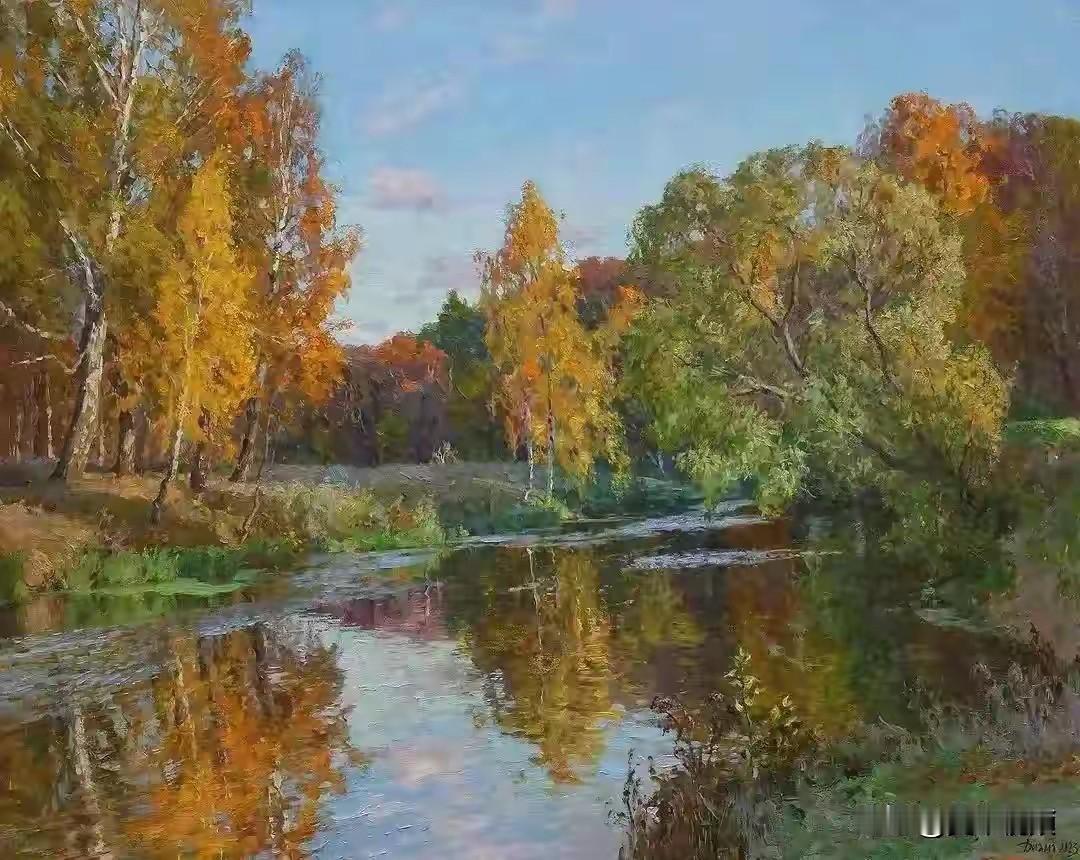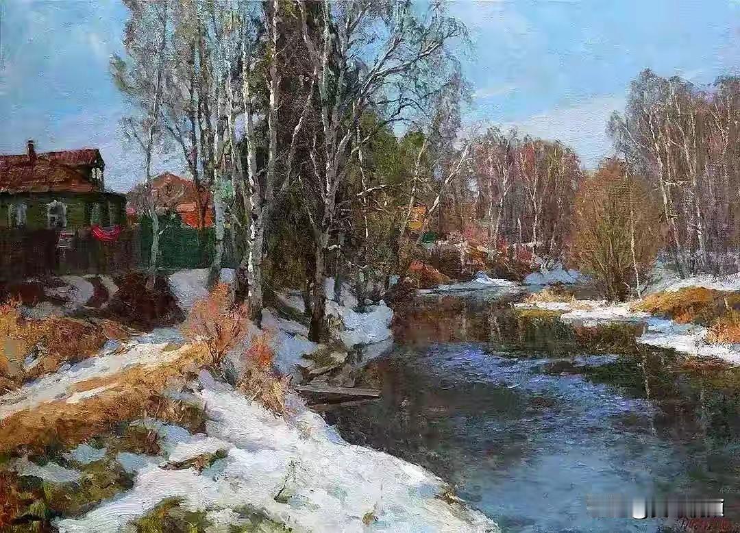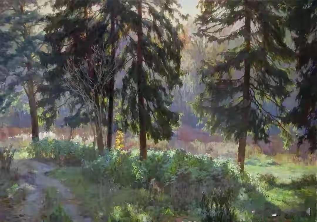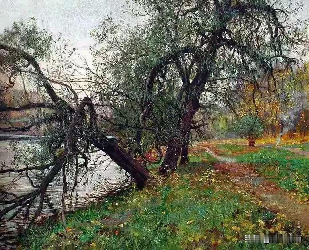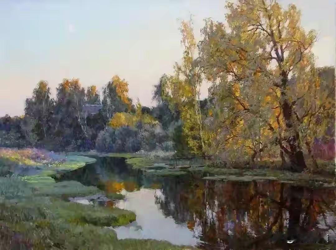 在他的画里,俄罗斯森林、原野都有灵魂,看得出他对自然的深沉爱,想必也有自己独特的
