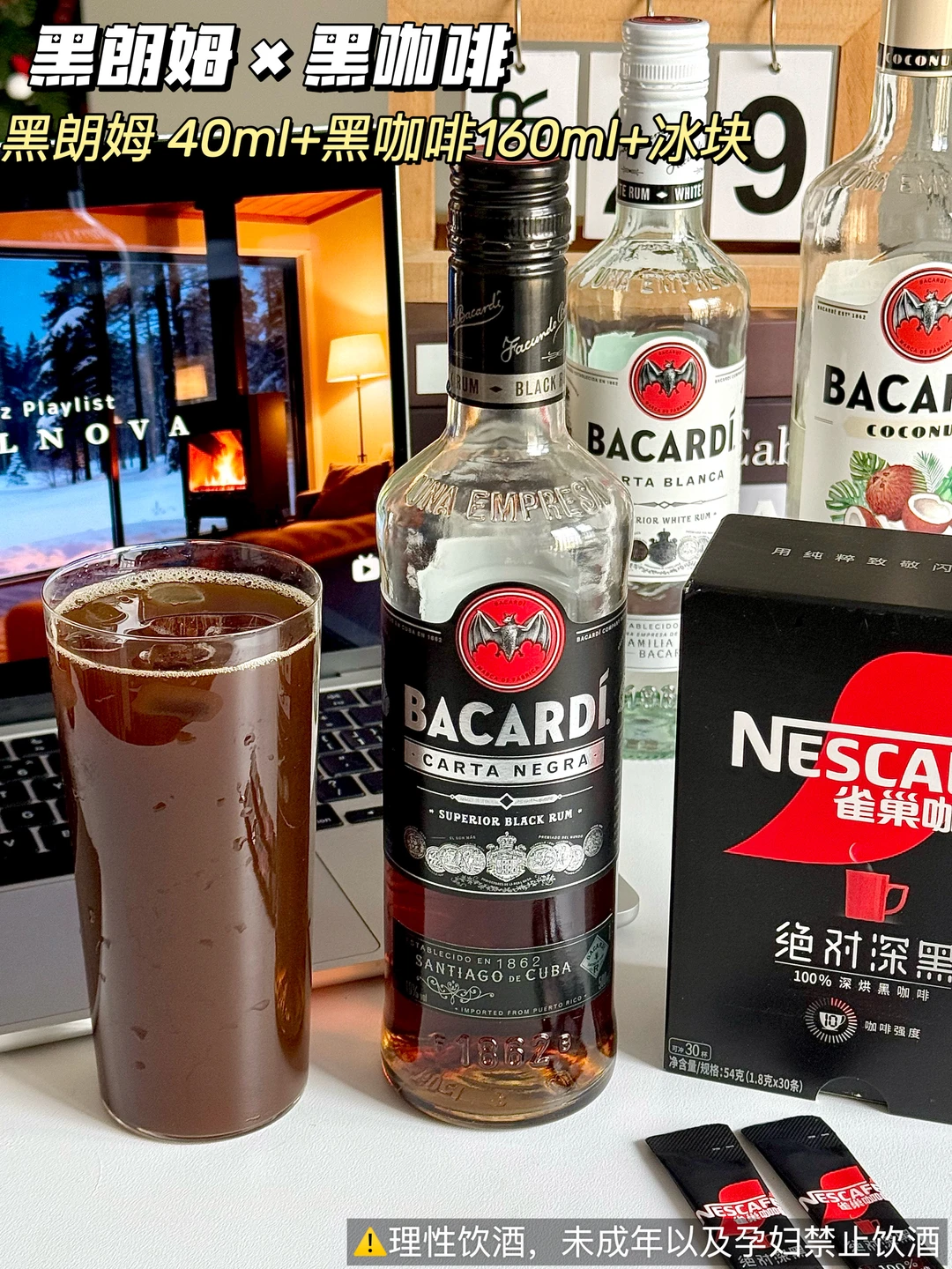 黑朗姆 40ml➕黑咖啡160ml➕冰块