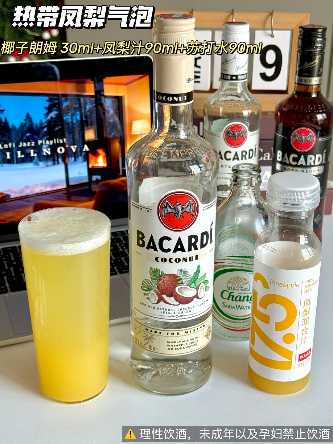 椰子朗姆 30ml➕凤梨汁90ml➕苏打水90ml