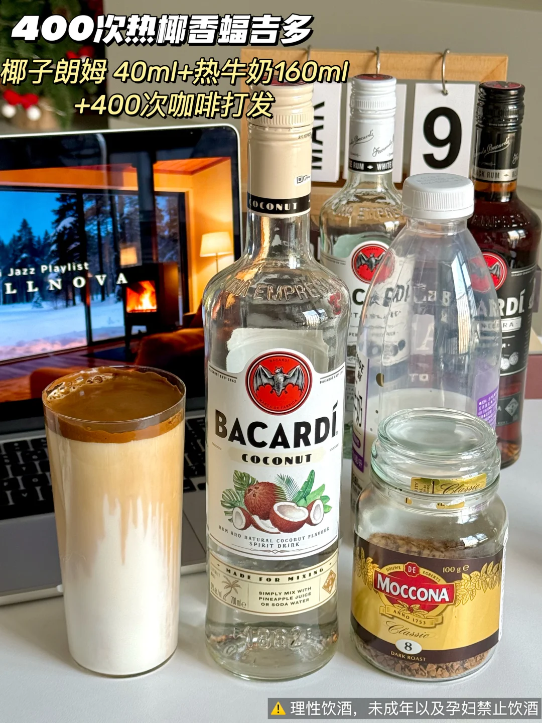 椰子朗姆 40ml➕热牛奶打底160ml➕400次咖啡打发
