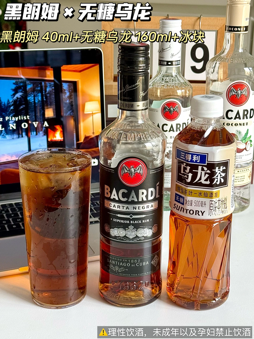 黑朗姆 40ml➕无糖乌龙 160ml➕冰块