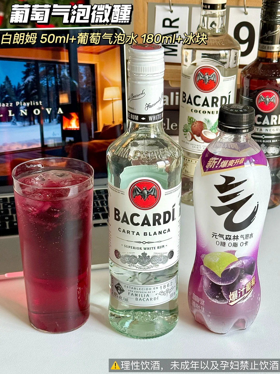 白朗姆 50ml➕葡萄气泡水 180ml➕冰块