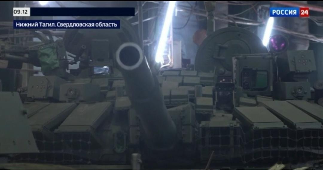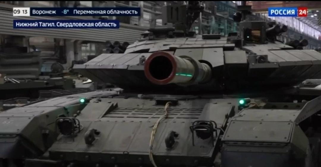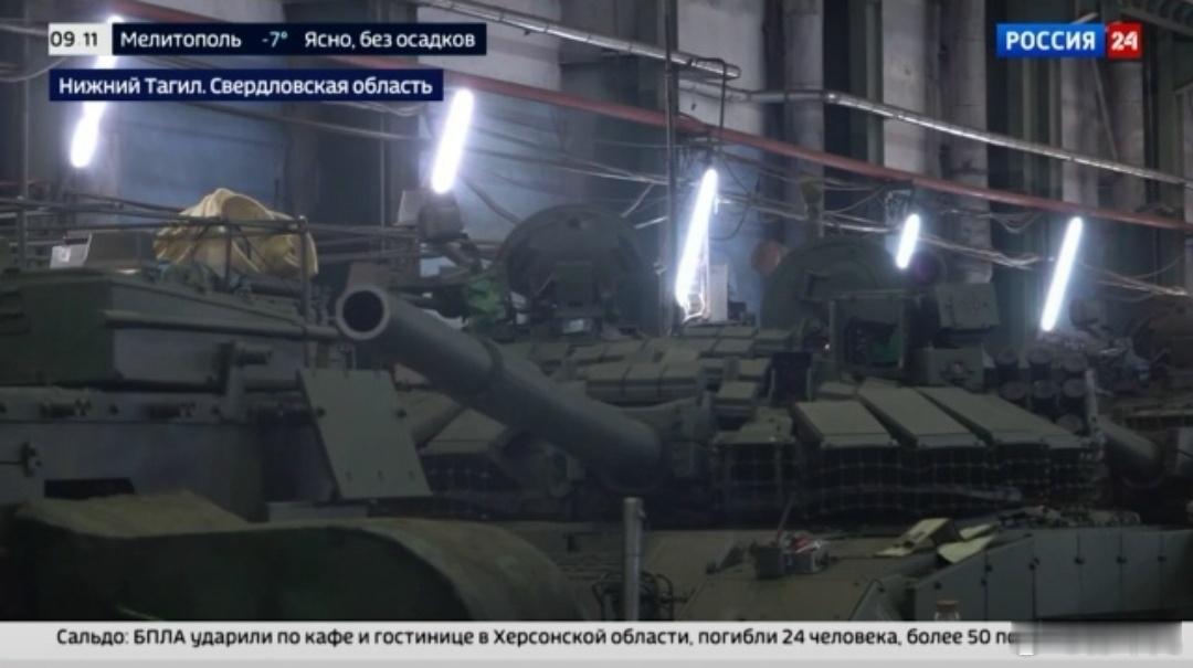在俄罗斯24的新闻报道中乌拉尔车辆厂的生产车间,出现了配备竞技场-M主动防护系统的T-72B3M和T-90M主战坦克。俄乌冲突俄乌局势新进展