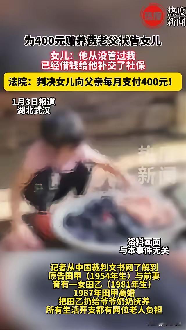这个案件涉及父母与子女的赡养义务,法律上有明确的规定与原则,具体分析如下: 法律关系与义务: 根据《民法典》第一千零六十七条,子女有赡养父母的义务,父母也有抚养子女的责任。这是基于血缘关系的法定义务,双方的义务是相对独立的。即使父母未在子女成长过程中负起抚养责任,只要父母生活困难、缺乏劳动能力,成年子女依然负有赡养的责任。 父母的经济条件: 在本案中,老田已经退休,领取养老金,每月大约1500元,生活应有一定保障。而小田虽然经济困难,但也没有提供明确证据证明自己没有收入,只是现有的经济状况很难应付额外的赡养负担。 子女的经济状况: 法律允许考虑子女的实际经济能力。小田有两个未成年子女,自己经济困难,且患有疾病,家庭负担较重。法院在判决时,依据武汉市的人均可支配收入标准,设定每月400元的赡养费,符合实际生活负担,不超出合理限度。 双方责任的平衡: 虽然父母在子女成长期间未尽抚养责任,但没有解除子女的赡养义务,特别是在父母生活困难的情况下,法律强调父子关系不因过去的责任未尽而中止。子女需要履行赡养义务,但应考虑自身实际能力。 结论: 小田虽有家庭经济困难,但法律认定父母在生活困难、缺乏劳动能力、未成年子女的情况下,子女应履行赡养义务。法院判定每月400元的赡养费,合理反映了家庭的实际经济状况和公平原则。 综上所述: 子女对父母的赡养义务不因父母昔日未尽抚养责任而解除。 子女在经济困难的情况下,仍有法律义务赡养父母,但支付额度应合理。 法院支持老田的诉讼请求,判小田每月支付400元赡养费,是法律与实际情况的合理结合。 如果你有进一步的问题,欢迎继续咨询!子女有赡养义务 父母赡养