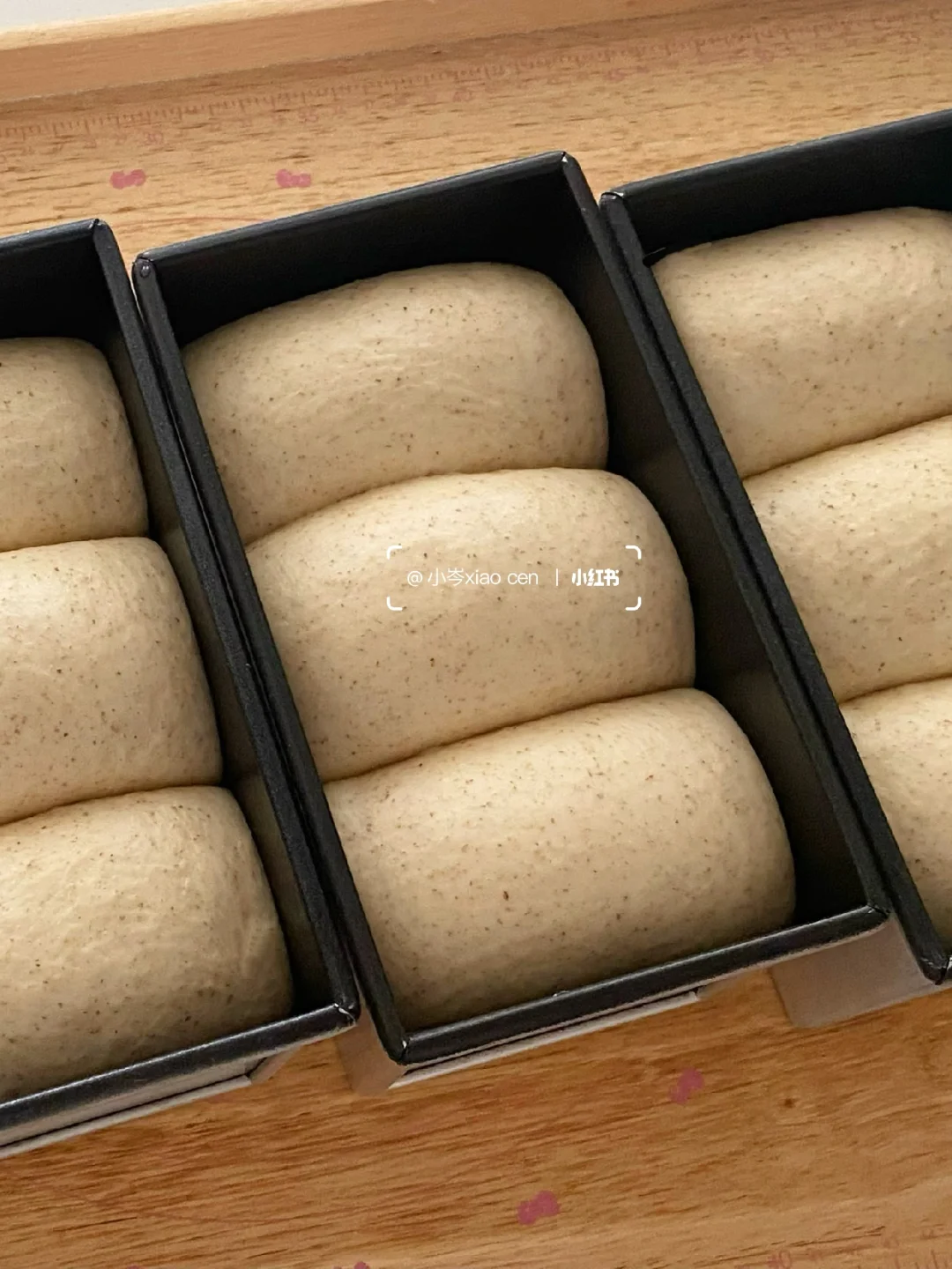 9.放入450g吐司模具,3个面团一个模具。