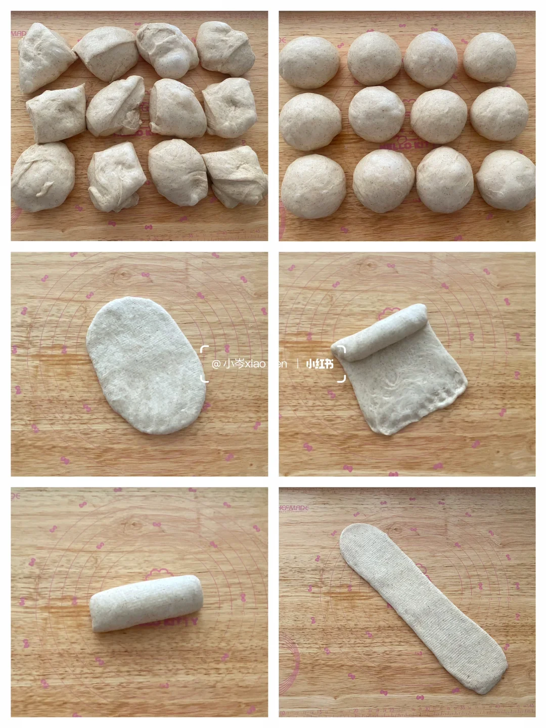 4.平均分成6份,滚圆,盖好,放置15分钟。