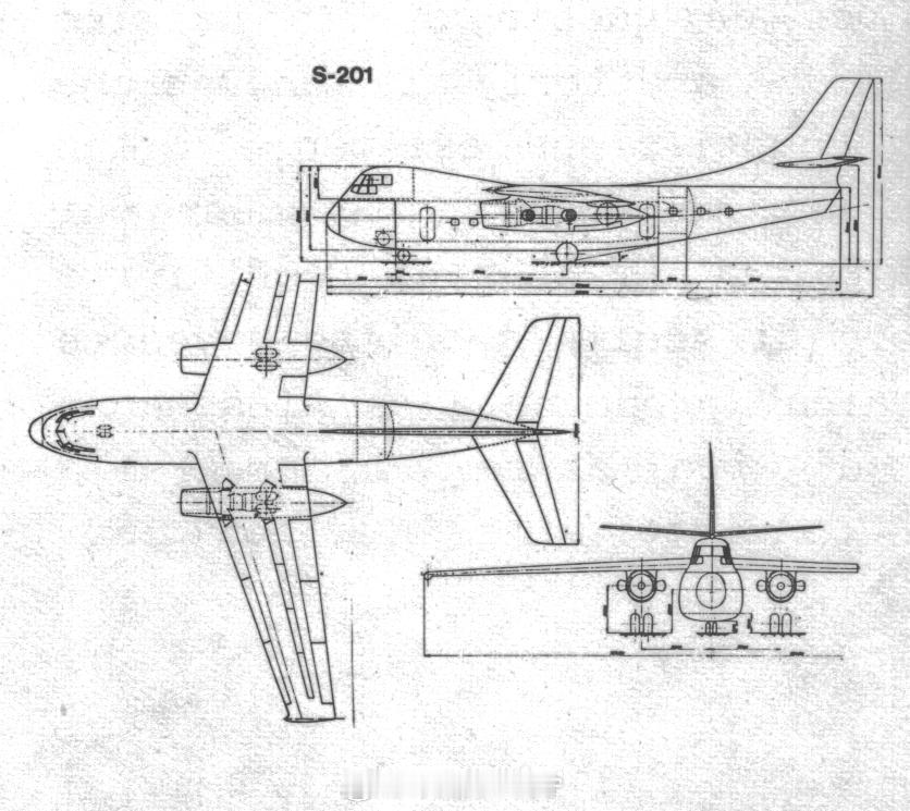 烽火问鼎计划每天认识一件兵器 自二十世纪五十年代中期起,北约欧洲成员国提出了一系列北约基础装备需求标准。其中前四项涉及飞机项目,最后一项NBMR.4则针对垂直/短距起降战术运输机。在英国众多竞标方案中(包括阿姆斯特朗·惠特沃斯公司的AW.681),北爱尔兰肖特兄弟公司的方案尤为突出。该公司曾向英国皇家空军提供过配备吊舱式升力发动机组的双涡轮螺旋桨设计方案,加之在开发贝尔法斯特运输机过程中积累的经验,肖特兄弟公司认为自己在NBMR.4项目的竞争中具备领先优势。该方案被命名为PD.55,采用四台功率2650马力的罗尔斯·罗伊斯达特涡轮螺旋桨发动机,并在翼根延长段的两个吊舱内安装了24台推力1850磅的罗尔斯·罗伊斯162涡轮喷气发动机。参与NBMR.4项目竞标的六个北约国家共提交了25个方案,PD.55(图1-4)位列其中。截至1962年(即初始方案提交两年后),需求标准出现松动,新方案编号变更为NBMR-22,将原定航程要求缩减至仅500英里,并附加中标方案需在1964-65年间推出首架原型机的条件。然而局势自此趋于复杂:法国成为唯一确有如此短程运输机需求的国家。尽管一切看似仅处于推迟阶段,但NBMR.4与22号需求标准最终于1967年4月双双取消,PD.55方案随之夭折。意大利官方提交的NBMR-4垂直/短距起降运输机方案是G-222。鲜为人知的是,其他意大利公司也提交了设计方案,但被告知放弃。其中研究最为深入的方案之一是SIAI-Marchetti公司的S-201(图5),这是工程师布雷纳(Ing. Brena)的第一个正式项目。布雷纳曾是亚历山德罗·马尔凯蒂的得力助手和继任者(他是所有S-2XX系列飞机的缔造者,也是20世纪50年代SIAI公司授权生产的纳尔迪FN-333的设计者之一)。S-201是一款短距起降飞机,配备可调方向喷气发动机和抬高的座舱,以便为前舱门腾出空间。顺便一提,在决定由菲亚特公司中标后,其他公司组成了一个联合体来建造这架飞机。SIAI-Marchetti公司负责尾翼的详细设计和制造。