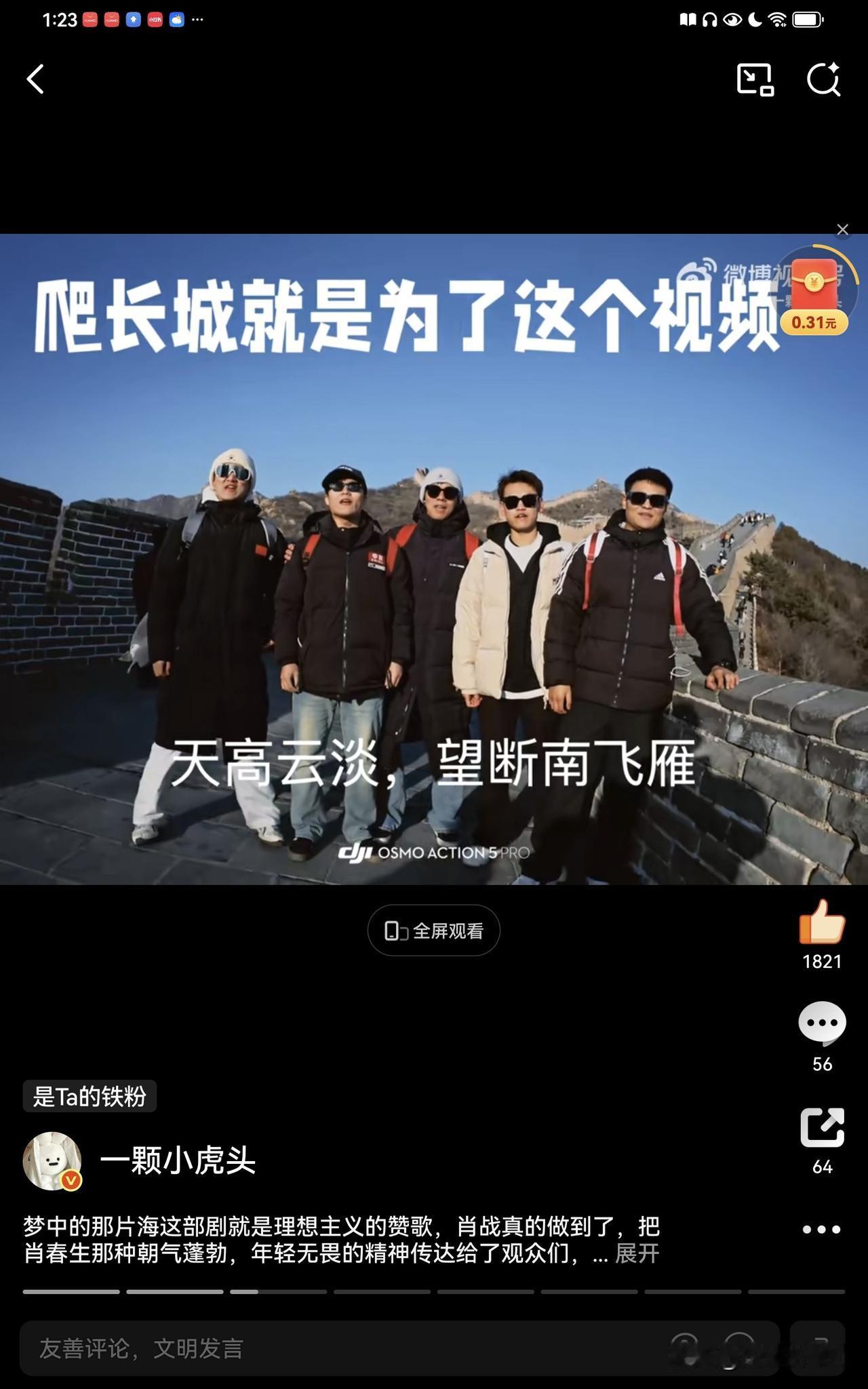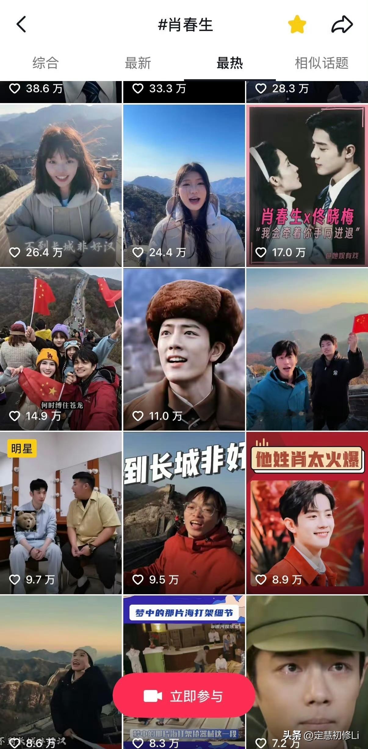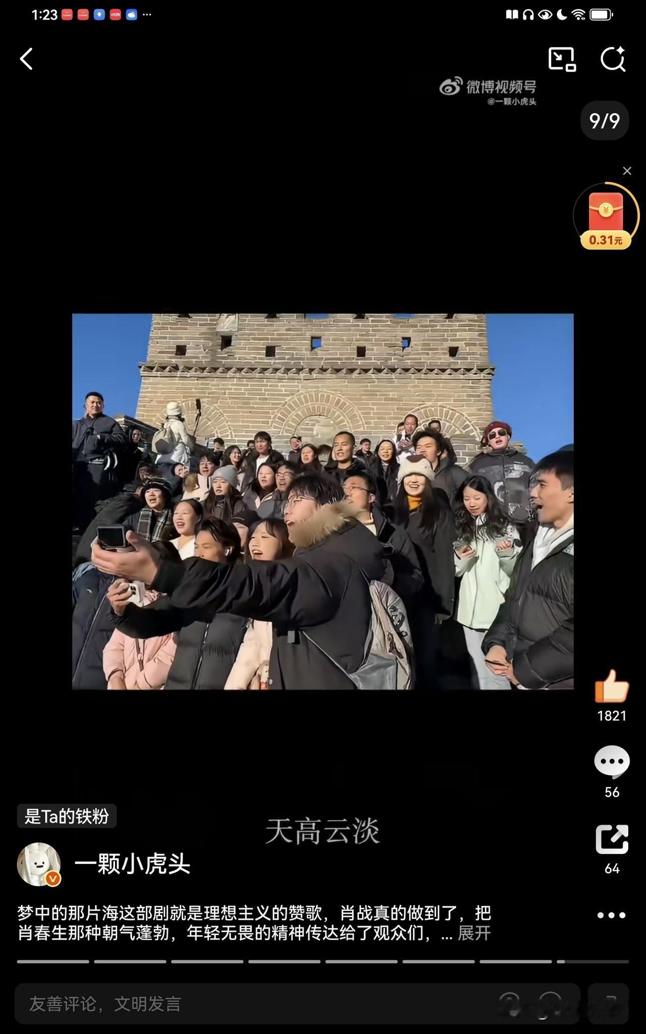 肖战《梦中的那片海》中肖春生的长城读诗每年都会有新的视频,今年突然又再次爆火,人民日报,新华社,参考消息也纷纷发布这些青春昂扬的场面,第一个大出圈的读诗女生点赞现在已经破1000万了,带着肖春生词条,所以没有人可以抹杀肖春生的功劳。 现在打卡的人越来越多,大家看到助力一下,让梦海这部优秀的年代剧被更多人看到。 肖战说到做到,他希望自己的作品能够带给观众力量,这不就是正向积极的力量,这样优秀的演员才是新时代年轻人的榜样
