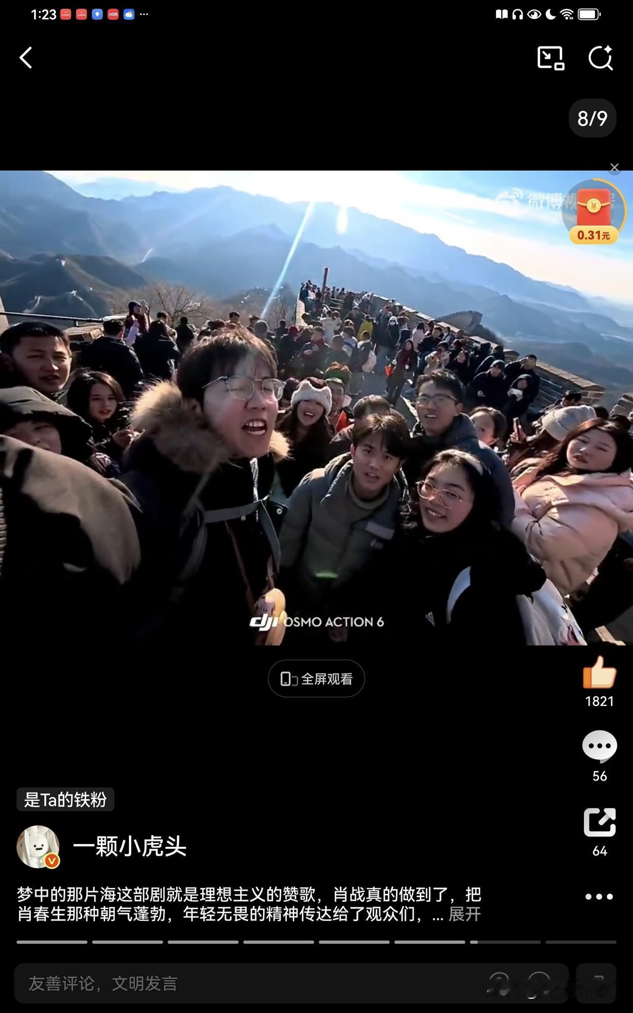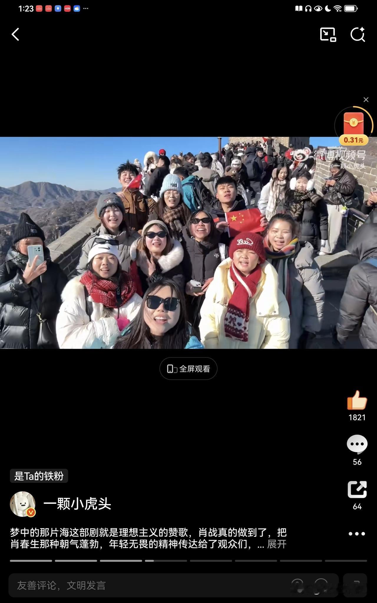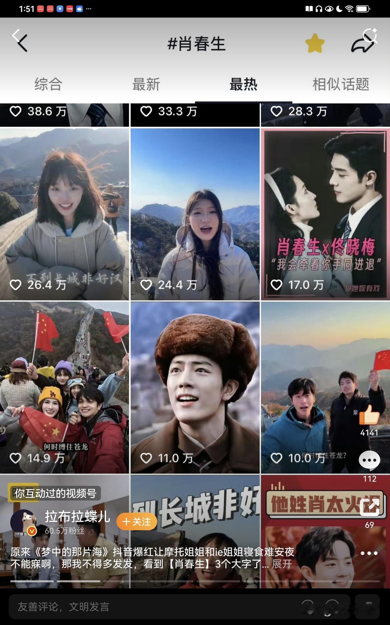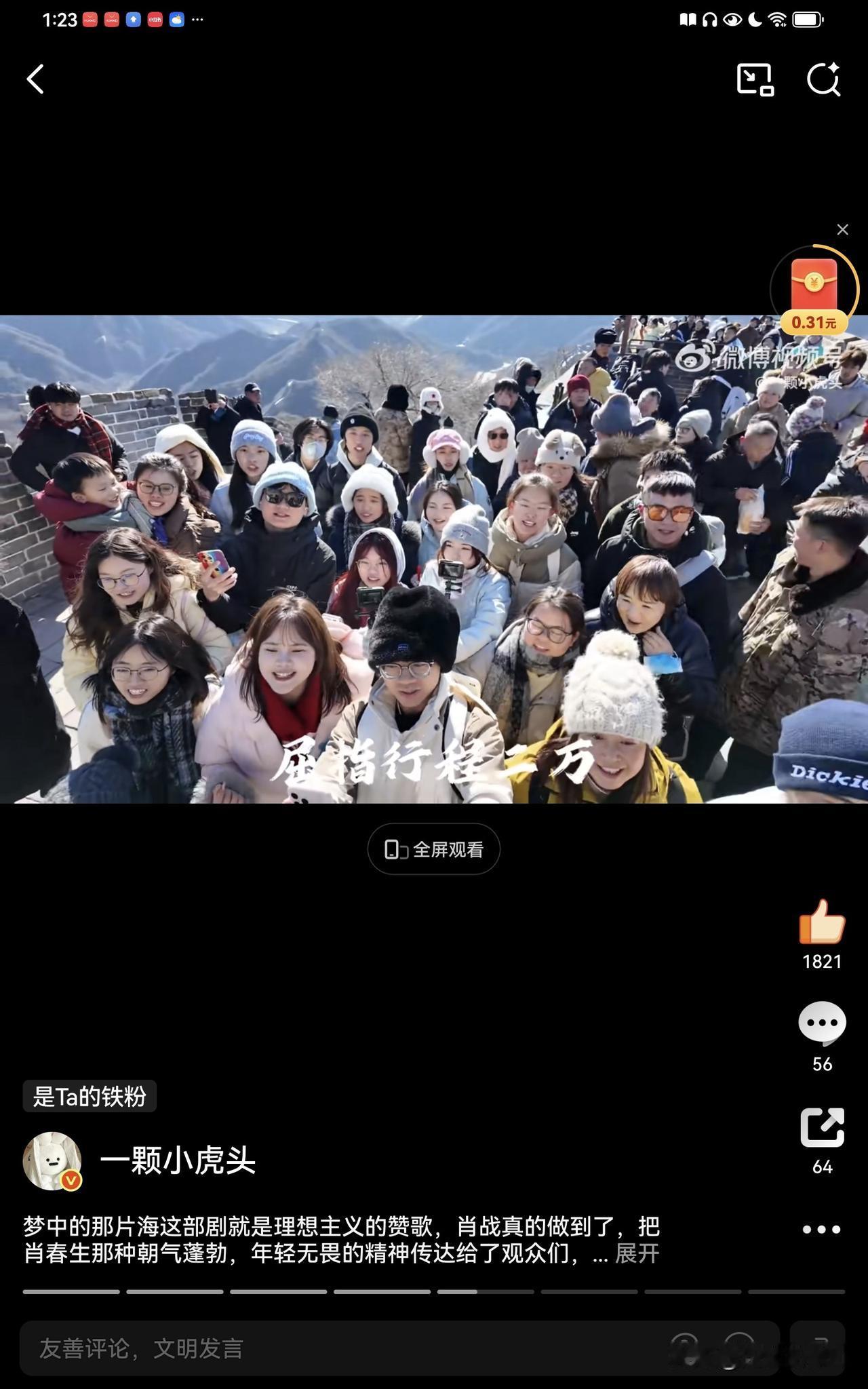 肖战《梦中的那片海》中肖春生的长城读诗每年都会有新的视频,今年突然又再次爆火,人民日报,新华社,参考消息也纷纷发布这些青春昂扬的场面,第一个大出圈的读诗女生点赞现在已经破1000万了,带着肖春生词条,所以没有人可以抹杀肖春生的功劳。 现在打卡的人越来越多,大家看到助力一下,让梦海这部优秀的年代剧被更多人看到。 肖战说到做到,他希望自己的作品能够带给观众力量,这不就是正向积极的力量,这样优秀的演员才是新时代年轻人的榜样