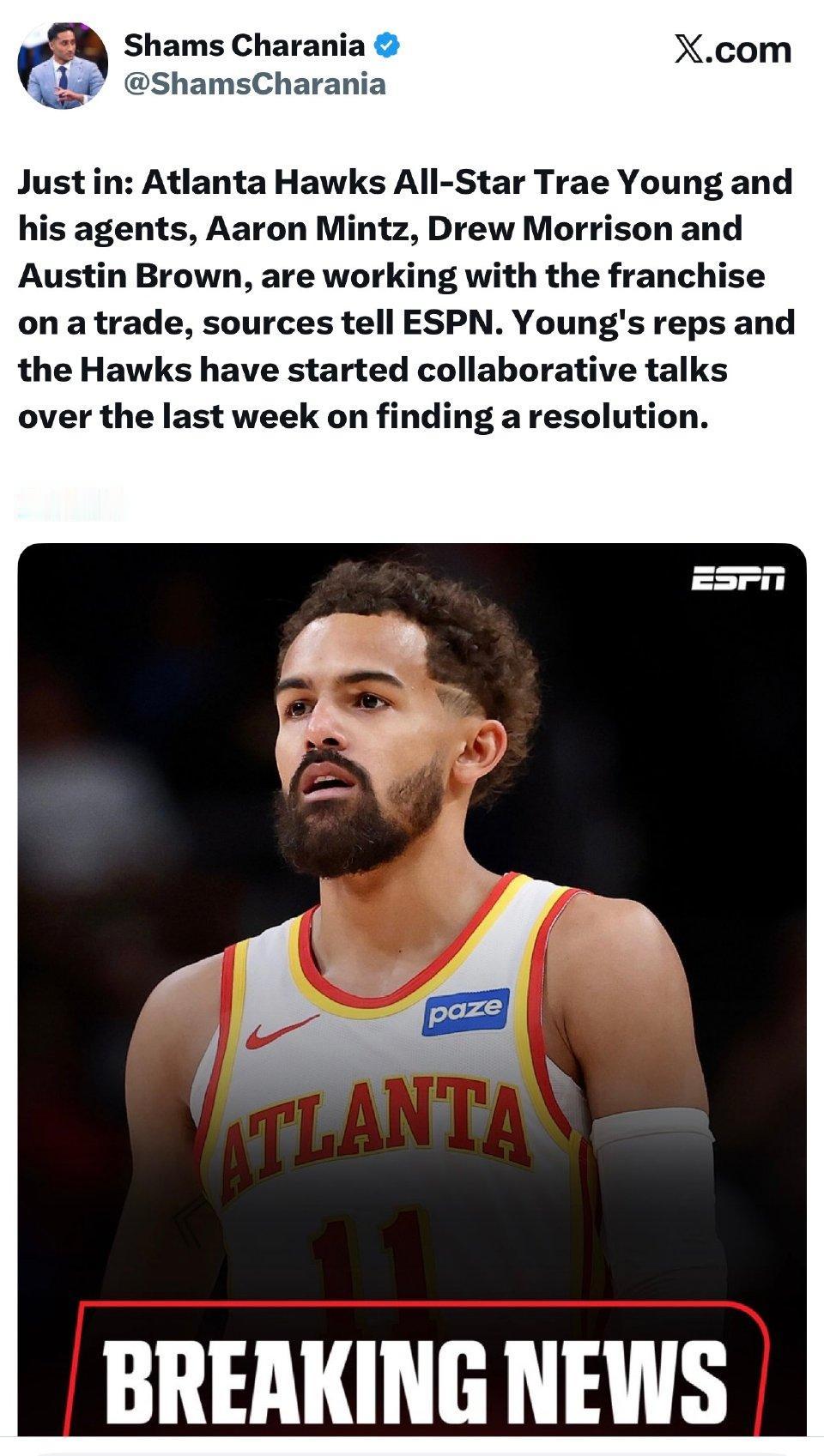 刚刚,NBA传来重磅消息:老鹰将特雷-杨交易到奇才,换来CJ-麦科勒姆和基斯珀特。 这笔交易的核心是“各取所需”。老鹰在特雷-杨伤停期间战绩反而更好(15胜12负),加上杨明年手握4890万球员选项、可能追求超级顶薪,球队选择转向年轻阵容。换回的麦科勒姆是即战力,他3060万的到期合同也为老鹰释放了未来的薪资空间。 奇才方面,他们用一名老将和一个角色球员,赌了一把年仅27岁的四届全明星后卫,希望特雷-杨能激活队内如萨尔等年轻天赋。 简单说,这是一笔关于“现在与未来”的互换:老鹰要灵活性和新开始,奇才要球星和可能性。