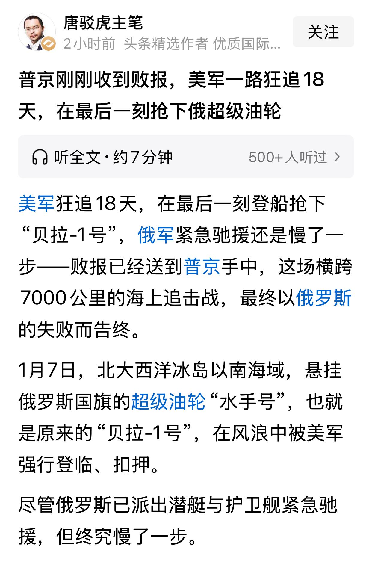 美军一路狂追18天,在最后一刻抢下俄超级油轮。 这释放出来的是什么信号? 昨天,央视评论员还评论说,美国人无论如何都不敢扣押俄罗斯的油轮。 弱肉强食,这是这个世界颠扑不破的真理。只有自己强大了,才不会被别人欺负。