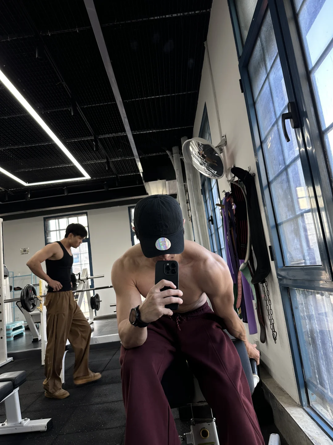 【胸部训练】 1.蝴蝶机夹胸15·8 2.双杠臂屈伸12·8 3.上斜史密斯推胸12·8 4.平板哑铃推胸12·4