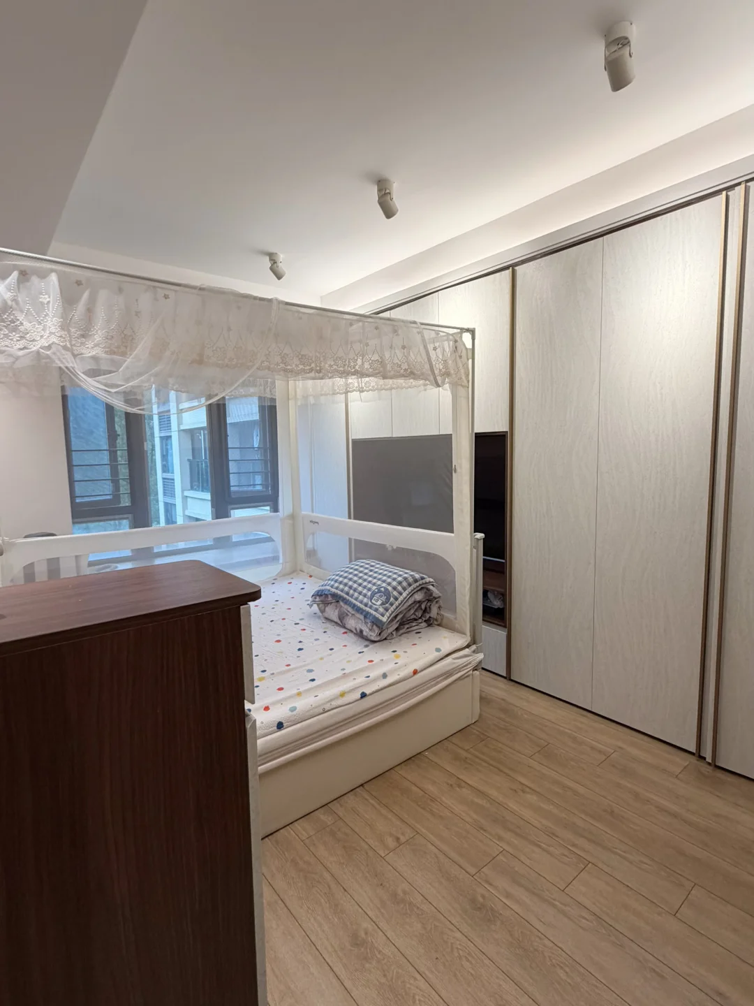 很久没有分享过这套房子了,当初做了全网初代厨房隐形门、不给亲戚留房间的隐形床,以及110寸超大投影幕布深受广大网友喜爱。[害羞R](我以往的作品都能看到) 118平方,三房两卫。小区里有麦当劳、7-11、生鲜超市、钱大妈,买东西很方便。山姆、盒马一小时送达,朴朴、叮咚半小时送达,所有快递全部送上门,还租有2个非露天又宽敞的固定车位,居住舒适度真的没话说。[哇R] 想出的原因是,我们想换个城市工作生活。在广州16年,住腻了。[暗中观察R]那么由我来简单介绍一下你未来的家吧~ ▫️低密度电梯房,两梯四户,门口有专属位置放鞋柜。 ▫️换了一万多块的防火隔音入户门,装了可指纹可人脸识别的智能门锁。 ▫️2020年年底收楼,2021年装修,2022年入住,房子很新。 ▫️全屋格力中央空调,可制暖制冷,两个洗手间都有智能马桶、浴霸、加热恒温挂衣架。 ▫️封掉阳台做了落地窗,窗外风景很好,客厅和三个卧室都是树景房。 ▫️客厅做了悬浮吊顶和轨道灯,电动窗帘,有110寸投影幕布,玄关处还有嵌入式蒸烤箱。 ▫️厨房全部拆掉重新装修了,做了隐形推拉门,有垃圾处理器、厨下净水器、洗碗机、消毒柜、双开门冰箱的位置,外面也装了前置过滤器。 ▫️预留了机器人自动上下水的位置,每天有扫地机器人定时出来打扫卫生,日常完全不用扫地拖地。 ▫️阳台有洗烘套装的位置,还做了家政收纳柜,里面可以放两台内衣裤洗衣机,完全告别手洗和晾晒。 ▫️两个卧室做了大衣柜,都是1米8的床位,主卧还有梳妆台,柜子材料都很好。第三个卧室做了书柜书桌和隐形床,使用起来非常灵活方便。 ▫️全屋电路做了升级,插座位置完全够用。 [吃瓜R]原计划是住十年以上的,奈何计划赶不上变化。我和老公在这里结婚生娃,工作生活顺顺利利,希望把好运传递给下一位爱它的主人。