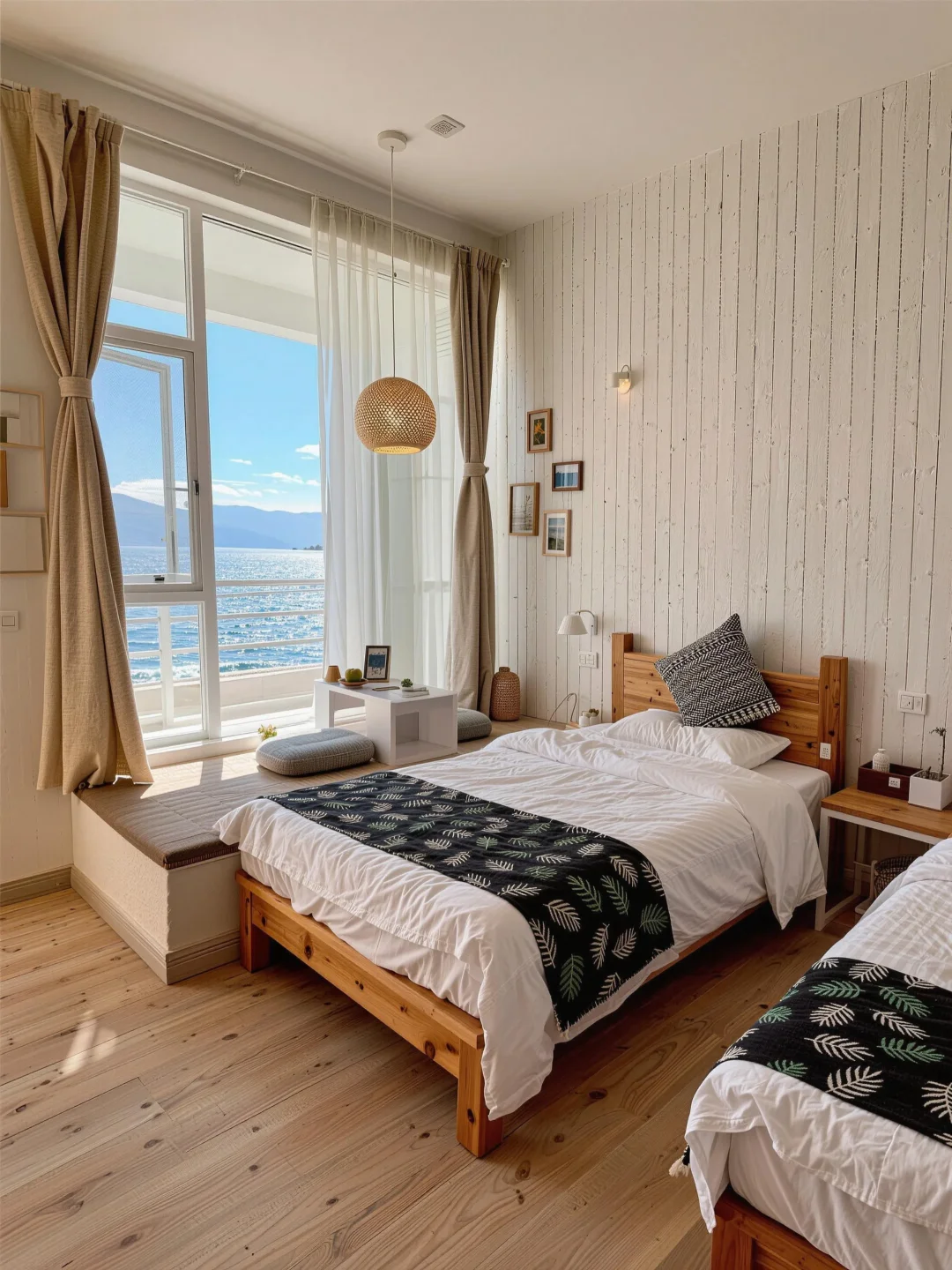 [合十R][合十R]房间自带超大落地窗,清晨拉开窗帘,金色阳光洒在洱海上波光粼粼的画面美到失语🌊露台的高脚凳是绝佳拍照点穿个白裙子随便拍,都是氛围感大片晚上还能躺在椅子上看星空,晚风超舒服~