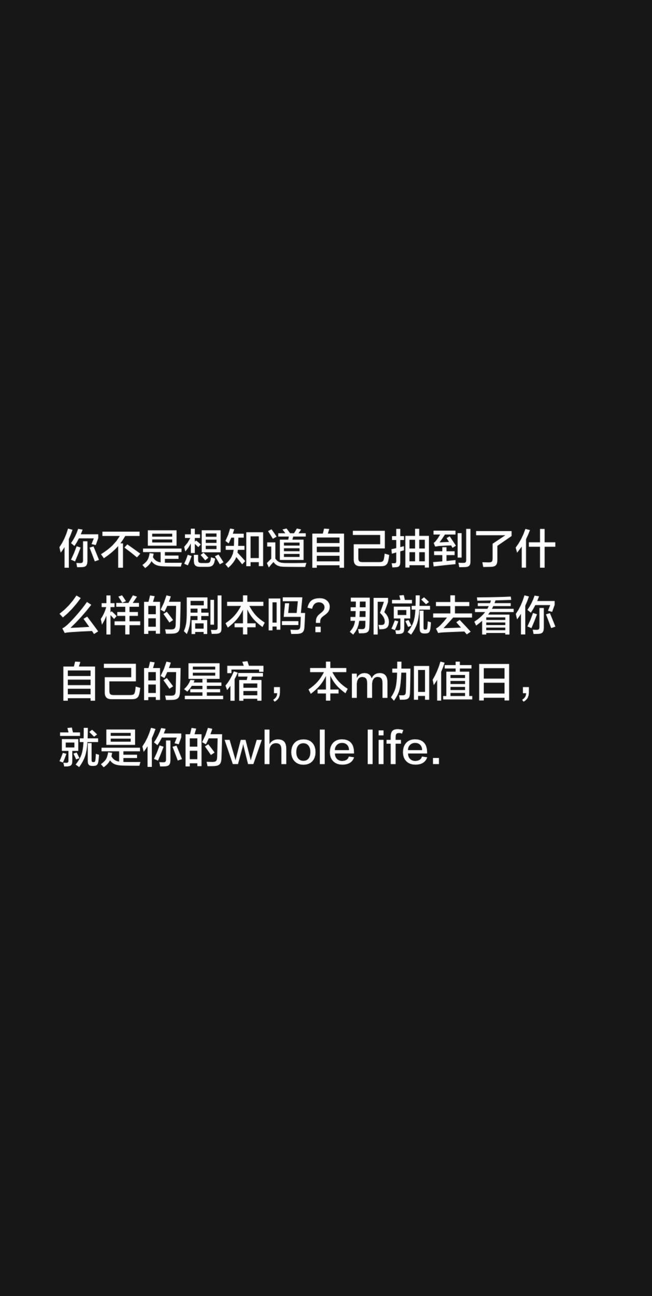 你不是想知道自己抽到了什么样的剧本吗?那就去看星宿关系,本m加值日,就是你的whole life.