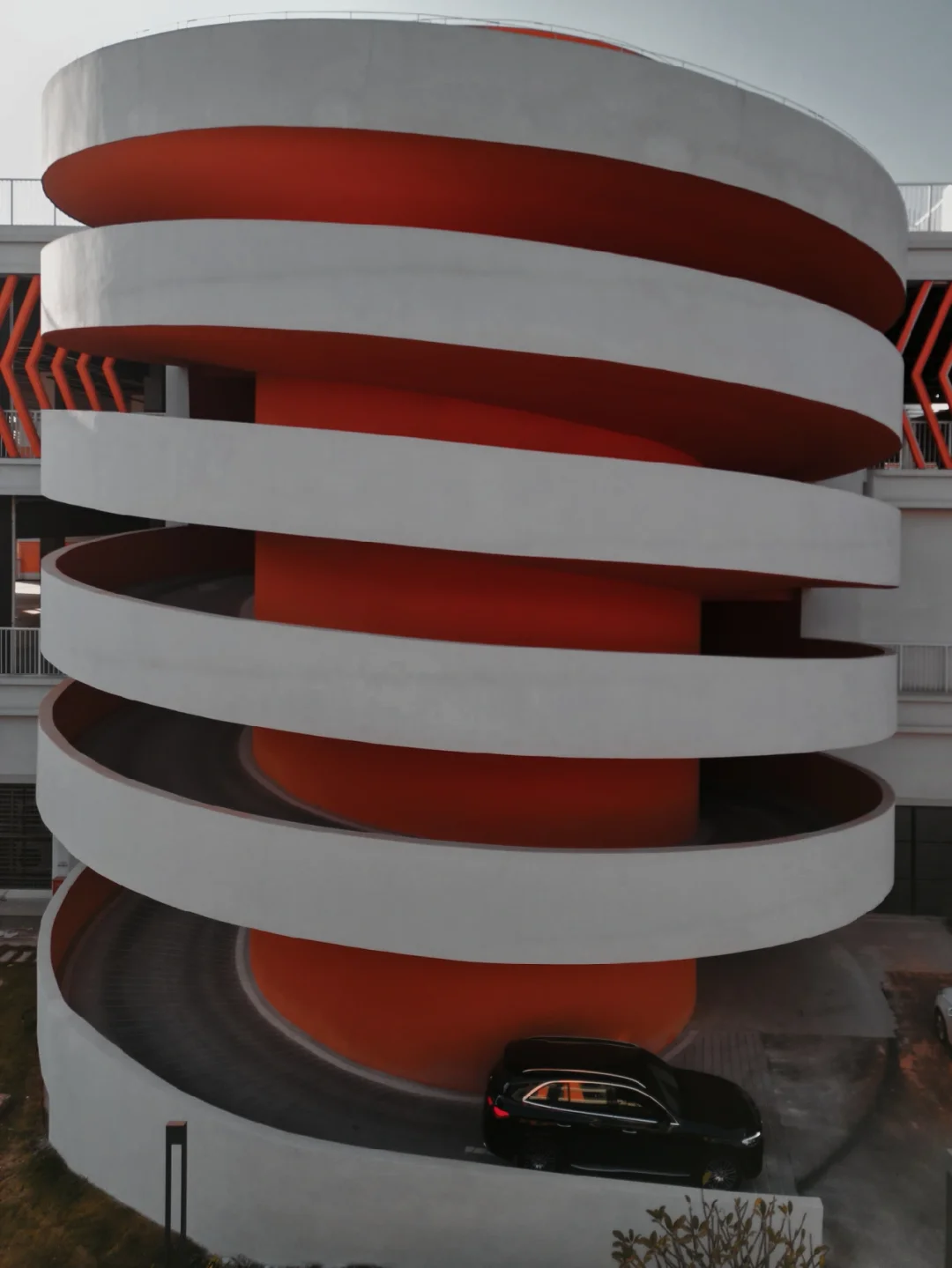 橙白撞色,螺旋线条,墙面的“WOW”大字,充满了“未来科技感” 拍人❗️拍车❗️都好看❗️ 📍定位:漳龙·智造e谷 车子可以直接开进去,建设中无需缴费,想在哪拍就停哪里❗️