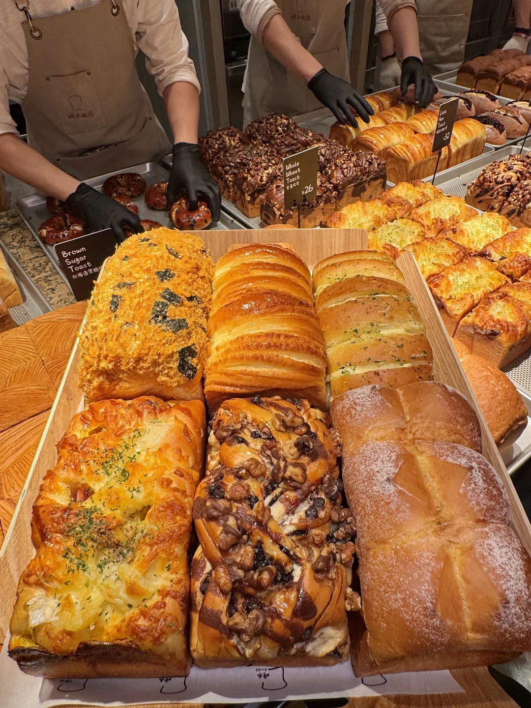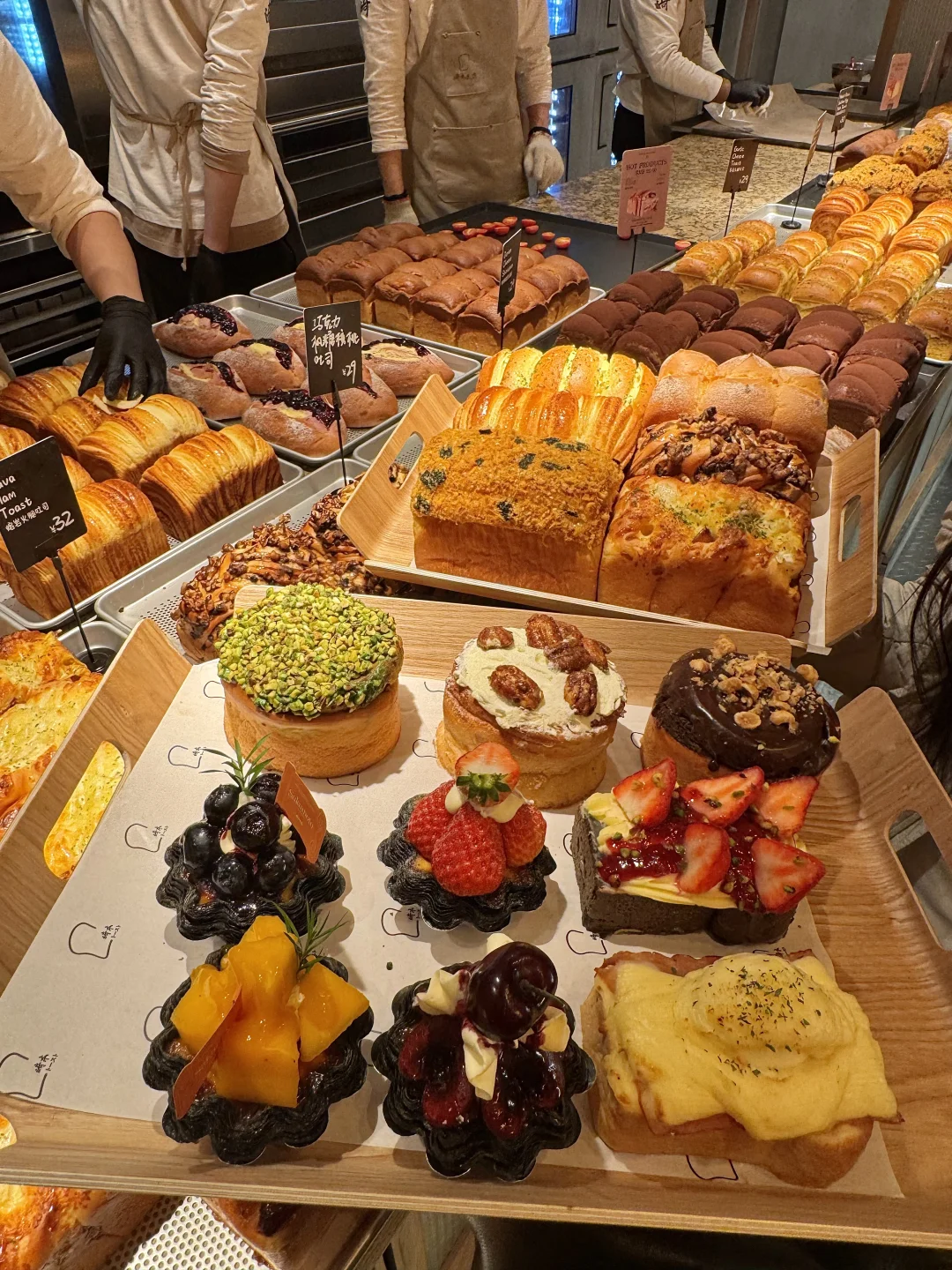 杭州面包之光!!!杭州中心新开的!!! 好多品种的面包和蛋糕,满满的货架看着就好治愈啊!! 面包明档现做的,梦之力吐司软乎乎的!各种吐司、乳酪包、牛角包有各种馅的…~