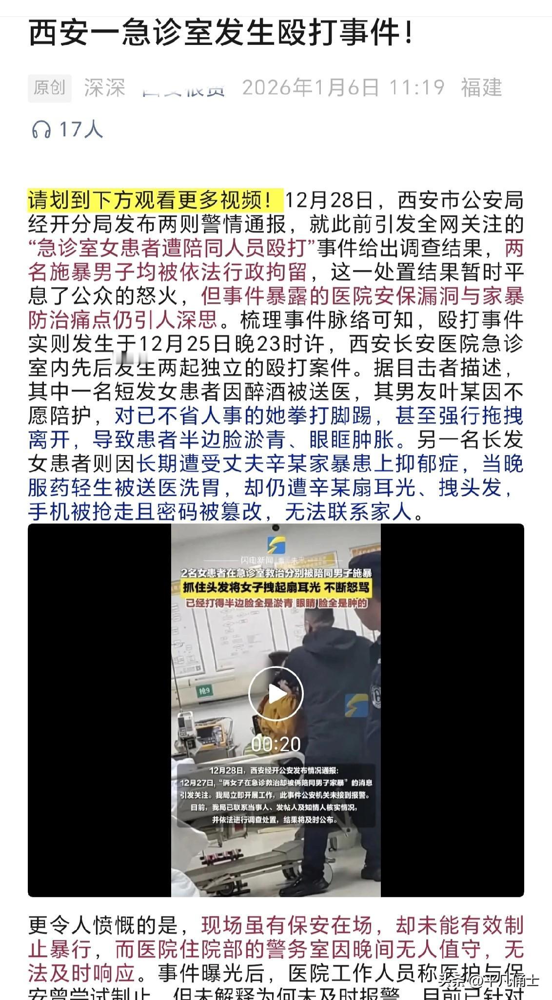 一家医院急诊室,一个晚上发生两起女患者遭男性陪护人员殴打事件。一起是女性醉酒送医,男友却不愿陪护,对其殴打还口中不停的说着,在一起五年你转过一分钱吗?另一位是遭受家庭暴力受伤送医,而就是在医院其丈夫也没有停止对其的殴打。有人说这暴露了家暴受害者保护的痛点,也有人认为是医院保安没有起到什么作用,夜间安保存在漏洞。 但对这些事情,更重要的是受害女性没有实现自强自立,导致被男性伴侣的轻视或者歧视造成的。试想一下如果这些女性可以实现经济独立,在家庭或者共同生活中必然处于强者,最少也是平等地位。而为什么有家暴,必然是一方处于弱势造成的。如果女人不能摆脱男人的经济供养,那你在两性关系中就处于被轻视的那一方。而前面这两个女人在大庭广众之下被男人殴打,那她们在家庭或者共同生活中的地位可想而知,而只言片语也可以看出经济地位决定了她们的家庭地位。我们很同情这两位都送到医院还得不到安静的女性,可想一想在生活中,为什么不能为自己活的自立一些呢?我们希望所有的家庭都是和睦的,所有的男人、女人都是幸福的,但幸福是要靠自己去奋斗的,而不是别人施舍的。所以这些让人看着心痛的消息,想想关键是受害者没有活出自己的精彩样子。