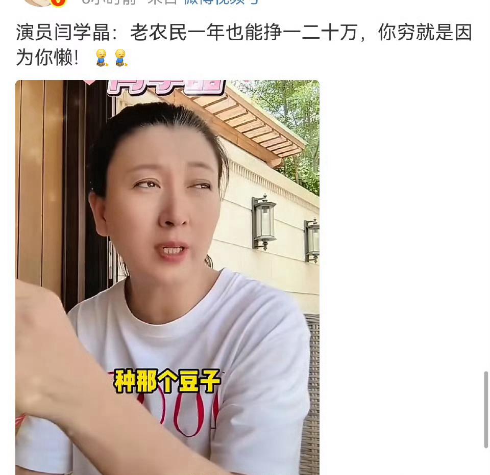 网友A:闫学晶最近直播说农民一年能挣一二十万,穷是因为懒,还说现在没有真正的穷人,这言论真把我看愣了。 网友B:是啊,这不是典型的“何不食肉糜”吗?她自己条件好,就以为所有人都能轻松赚到钱,完全没考虑现实。 网友A:很多农民辛苦一年也就几万块,还要看天吃饭,她这么说简直是精英傲慢。 网友B:对,她可能没接触过真正的底层生活,才会说出这种脱离实际的疯话。 网友A:这种言论很容易伤到别人,也容易误导不了解情况的人。 网友B:嗯,公众人物说话得有依据,不能凭想象下结论,不然只会招黑。