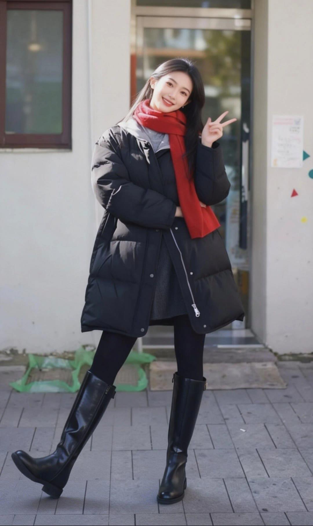 分享时尚穿搭心得靴子大衣穿搭