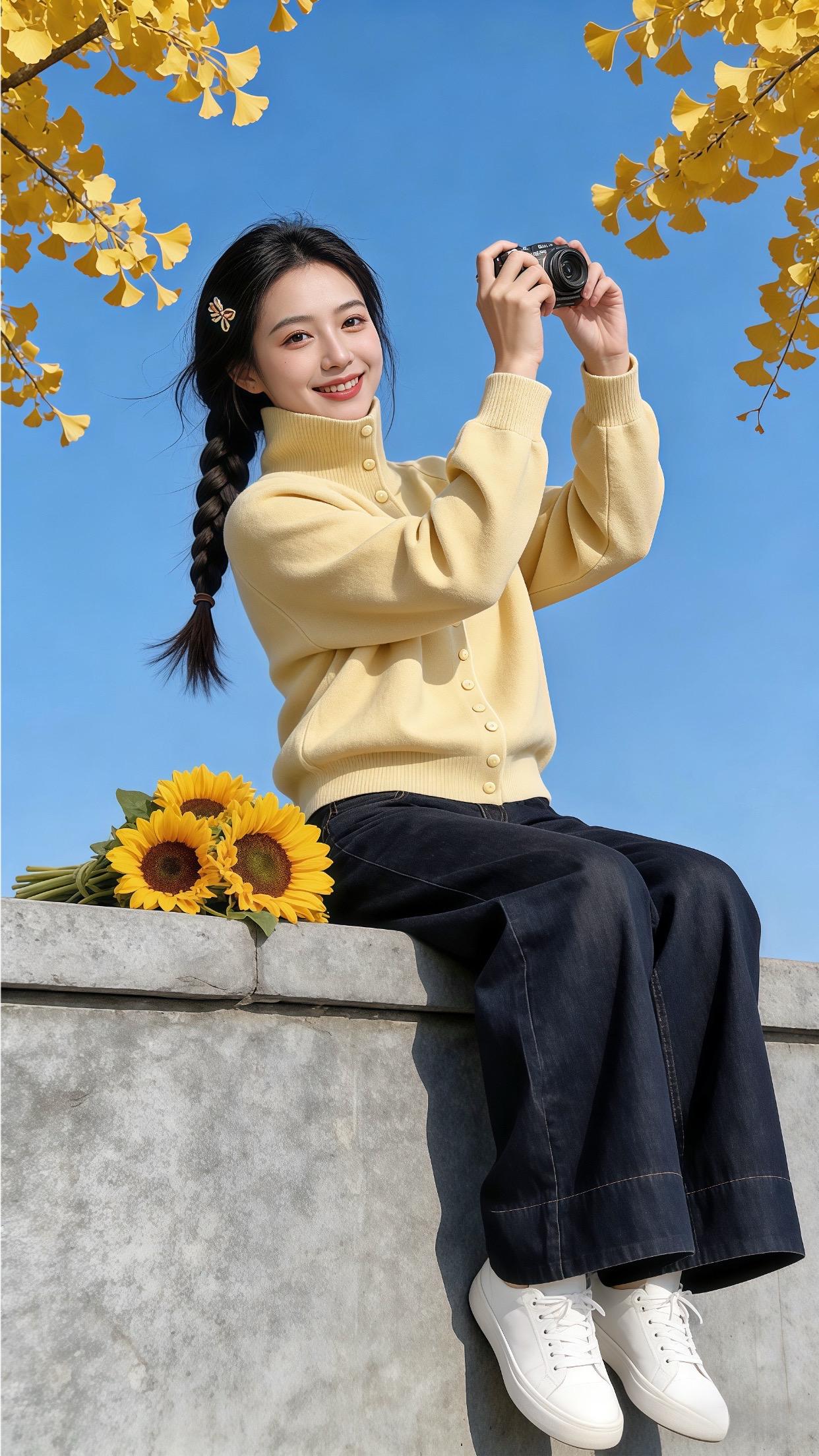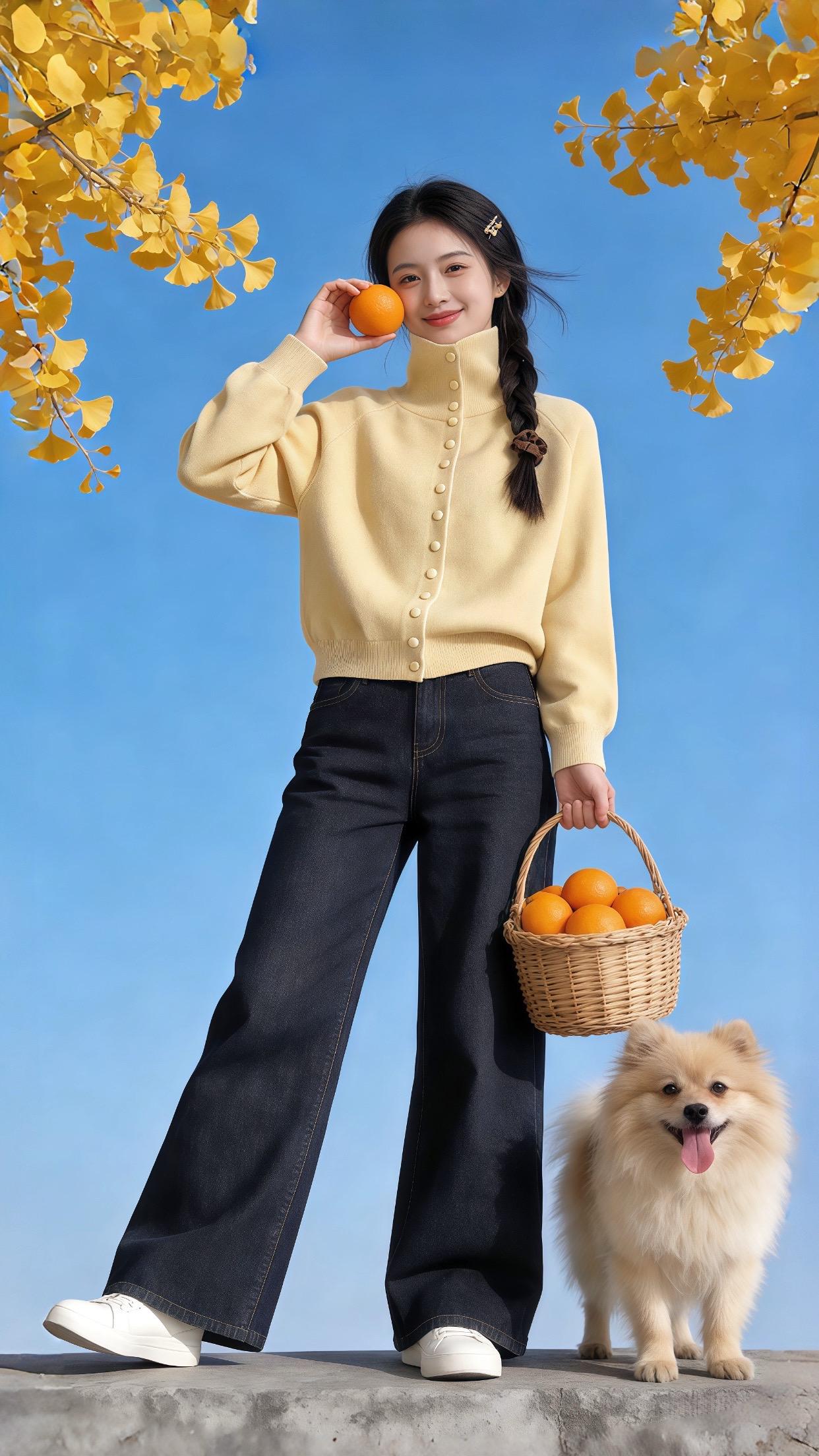 夏天在自然公园里,穿白色背心搭配黄色牛仔裤,妥妥就是甜美少女本女。白色背心清爽又