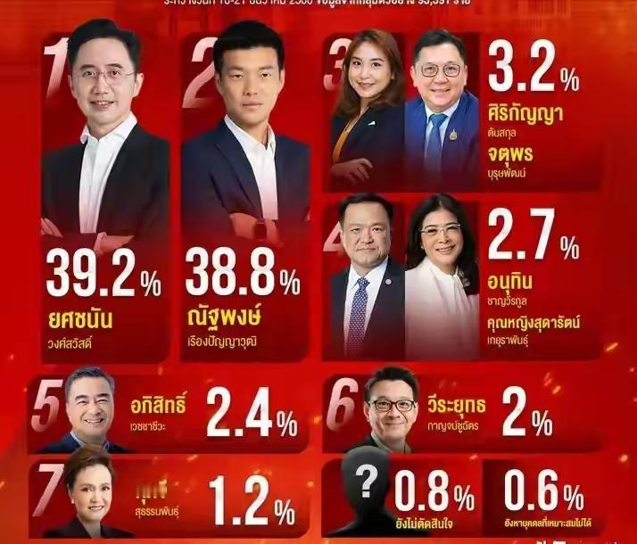 泰国最新民调,引发政坛大地震,佩通坦表哥逆袭,超阿努廷居榜首