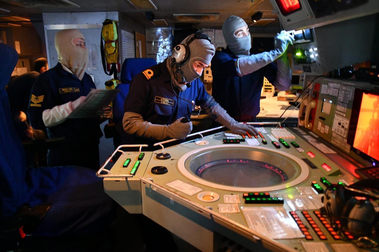 土耳其海军特遣部队TCG Yıldırım 号护卫舰内景,在地中海中执行侦察/监视、防空支援以及地面预警和控制训练。