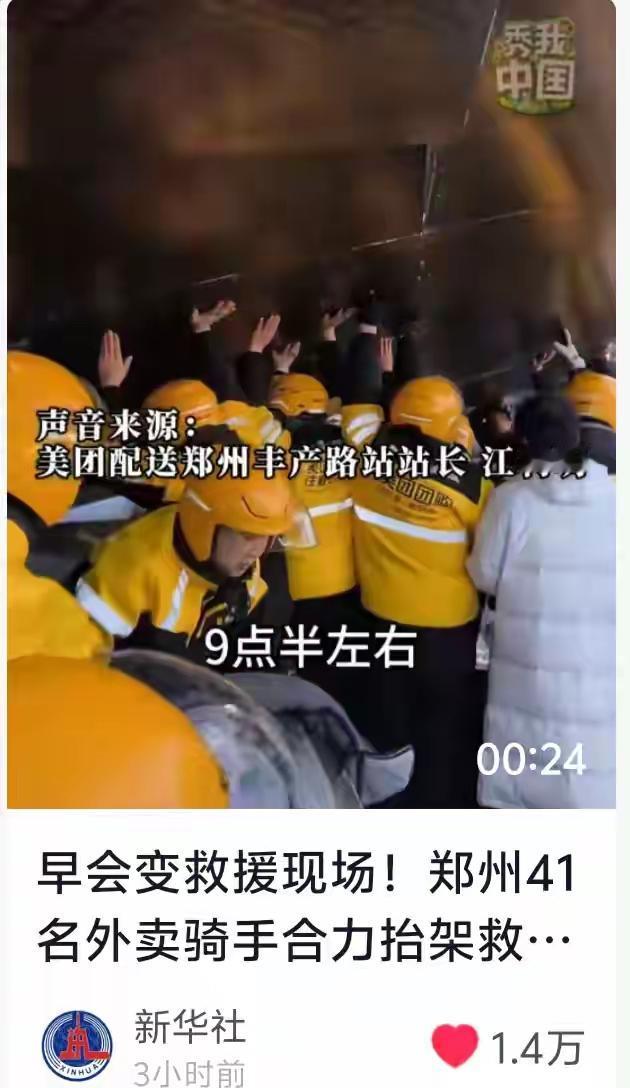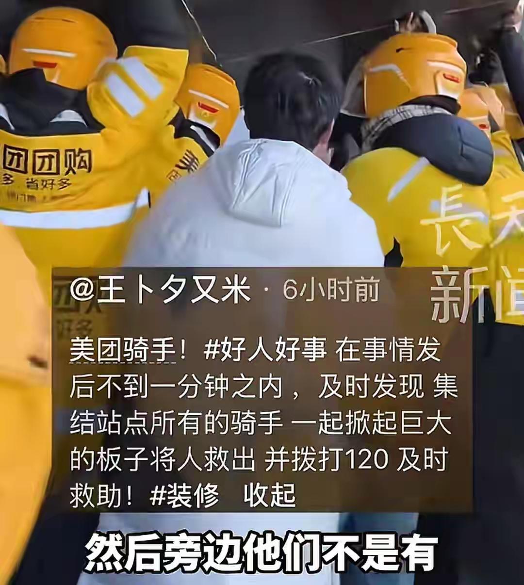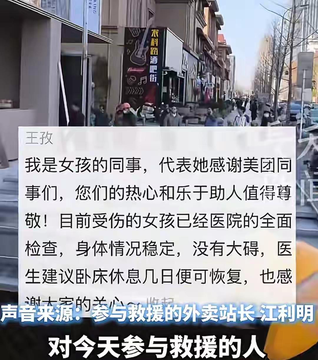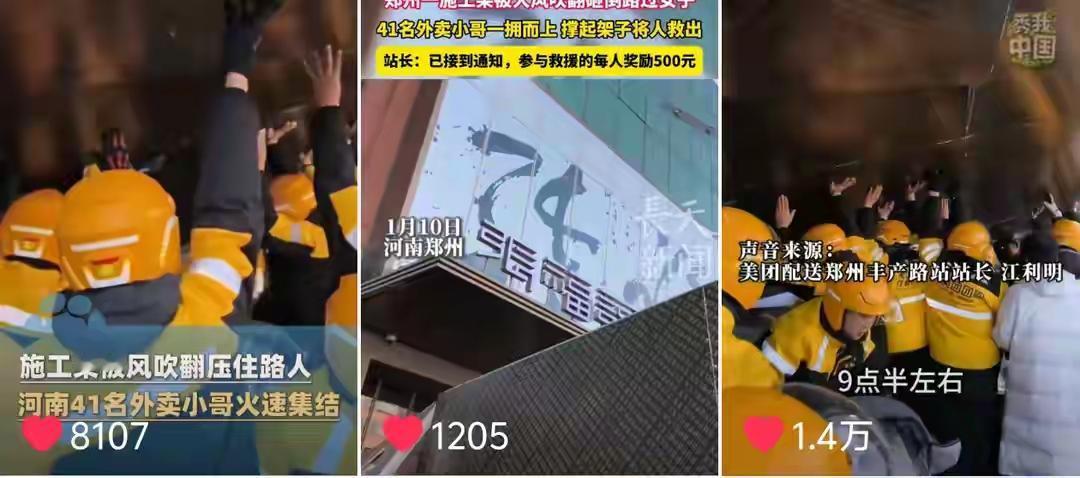 41名外卖员出手救人后续:女孩身体没有大碍,休息几日便可恢复 近日,在郑州的一处施工地,有施工架被大风吹翻倒塌,把一位路过的女子给压到了,并且被压在下面,在这千钧一发之际,41名外卖员同时出手,救出被困女子。这件事引起了广泛社会关注。 就在这场突如其来的灾难中,41名外卖员用行动诠释了什么叫“逆境中的英雄”。他们没有犹豫,没有退缩,只凭一股使命感和责任感,将一个生命从死亡线上拉了回来。这一幕,令人动容,也让我们再次思考:在这个快节奏、压力山大的社会里,普通人身上的善良与勇气,依然可以点亮这个世界。 或许有人会问:“他们为什么会这么拼命?”答案其实很简单——因为他们懂得生命的可贵。也许只是一次送餐的途中,但在那一刻,他们成为了救援者,成为了无名的英雄。这个社会,或许缺少完美,但绝不缺少温暖。每一个平凡的外卖员,都有一颗不平凡的心。 更令人感慨的是,这些外卖员的行动,不仅仅是救了一条生命,更是一次社会价值的彰显。我们常说,社会需要英雄,但其实,英雄就在我们身边。他们可能是默默无闻的快递小哥、外卖小哥,也可能是普通的上班族、学生、农民工……他们用行动告诉我们:在危难时刻,善良与勇气永远不会缺席。 这件事也让我们反思:城市的安全、公共的责任,不能只靠政府和企业来承担。每一个市民,每一个职业群体,都应该成为守护城市的“守门人”。而更重要的是,社会的温度,来自每个人心中的善意。只要我们都能像这些外卖员一样,勇敢站出来,伸出援手,那么这个社会就会变得更加温暖、更加有希望。 或许有人会觉得,救人是“责任”,但我想说,责任之外,更是人性最深处的善良流露。正是这些普通人,用他们的行动告诉我们:善良不是空洞的口号,而是需要用行动去践行的信仰。我们每个人都可以成为那一束光,照亮他人,也温暖自己。 最后,希望这次事件能成为一个新的起点,让我们都学会在平凡中发现不平凡。无论身份、职业、背景,只要心中有爱,就能在关键时刻成为别人的救命稻草。让我们为那些用行动诠释“人间大爱”的外卖员点赞,也希望社会能多一些关注、多一些理解,让善良成为我们共同的底色。 因为,生命的价值远比快递的速度更重要。每一个善举,都是这个社会最亮丽的风景线。外卖员光荣事件 外卖员救人