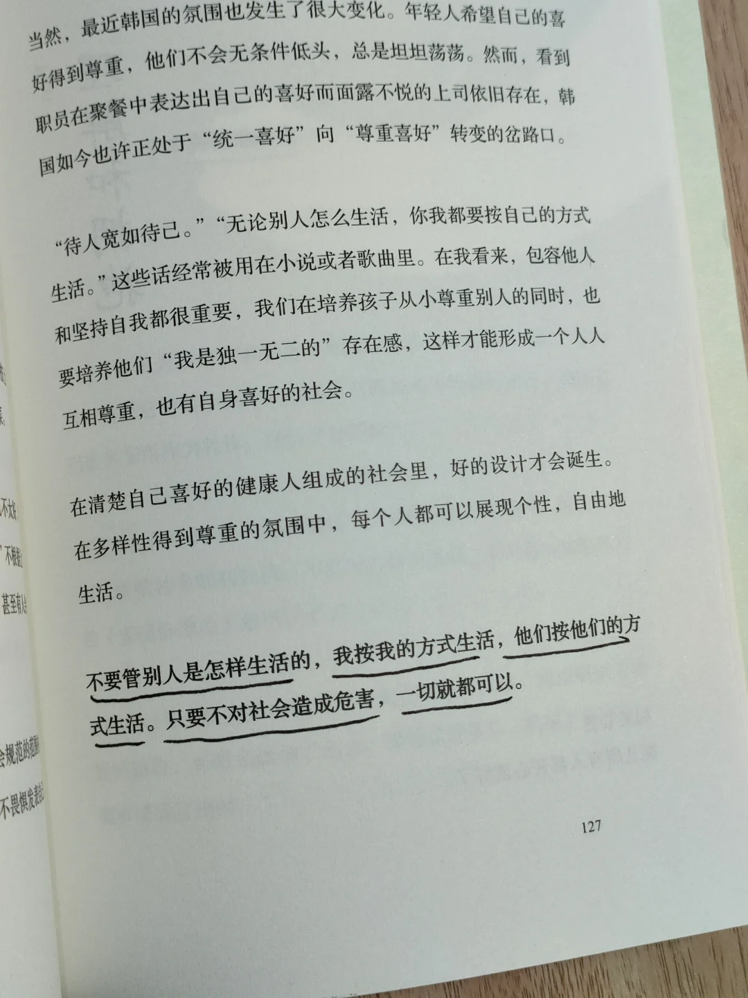 不要管别人是怎样生活的,我按我的方式生活,他们按他们的方式生活。只要不对社会造成危害,一切就都可以。