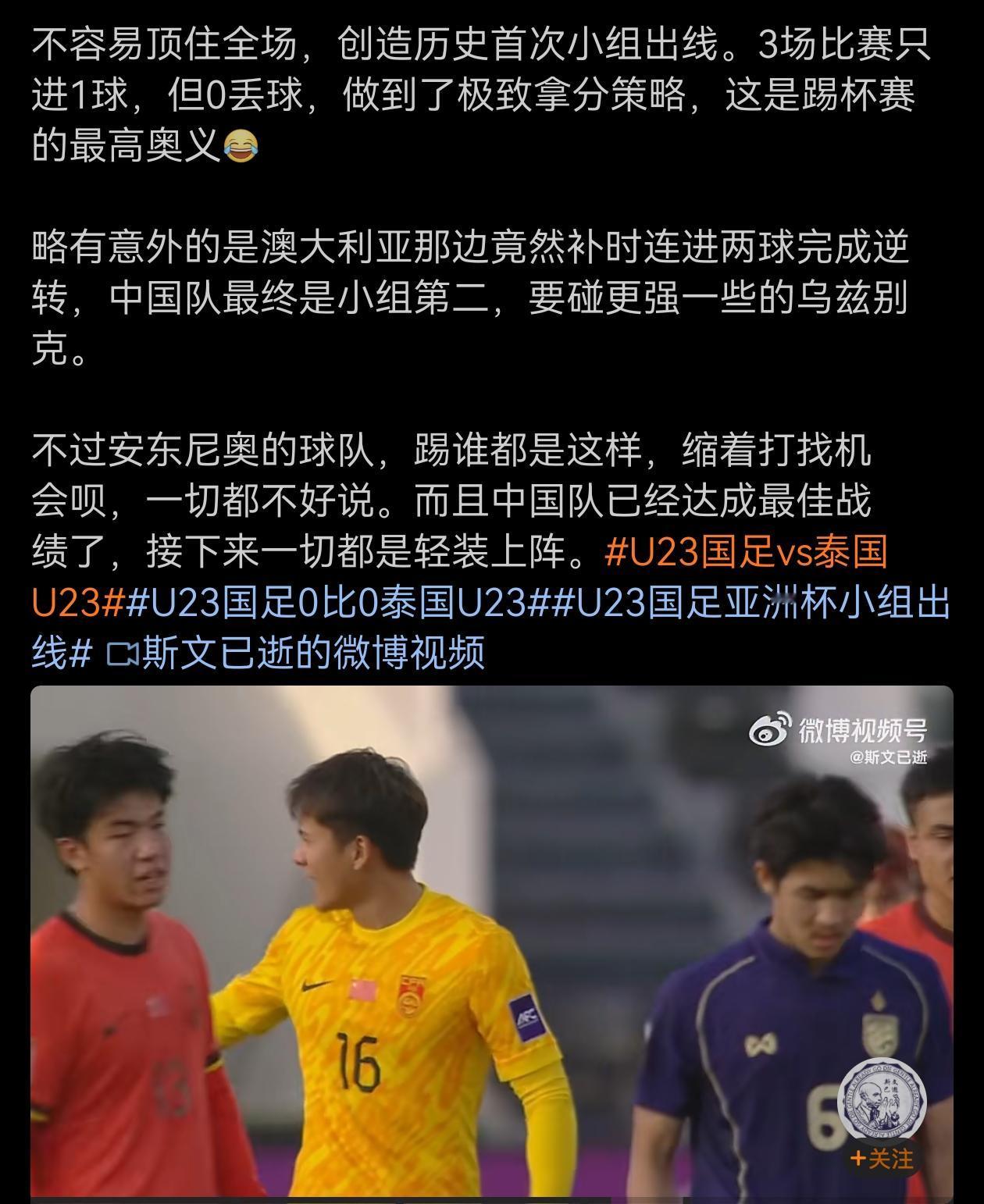 全场竟然被泰国队围攻,控球率基本在4:6,我们4,泰国6,虽然出线了,但无法使人乐观,要不是门将出色,可能已经输了,这样下去,也看不到希望,要知道,这只是泰国队啊!