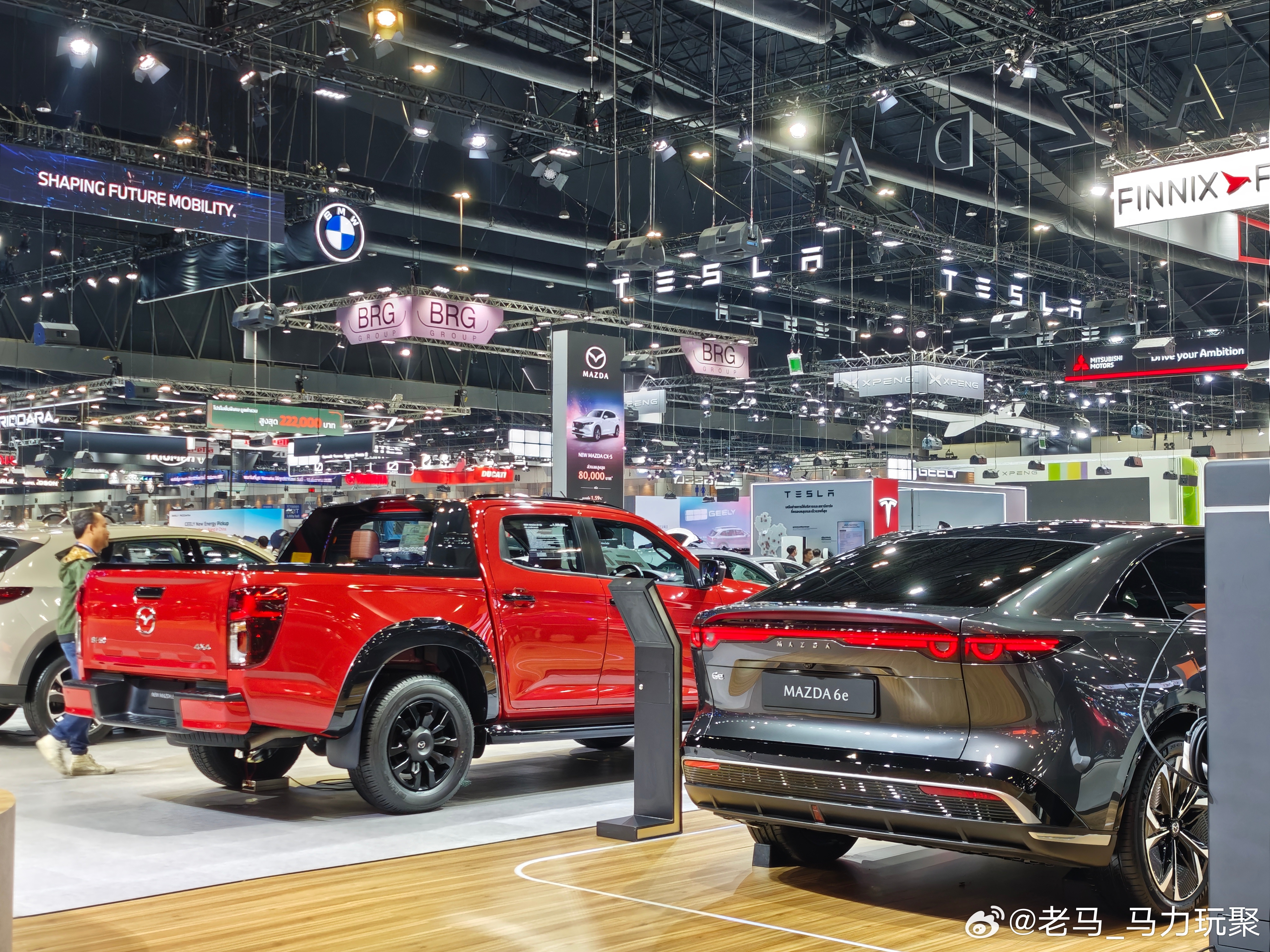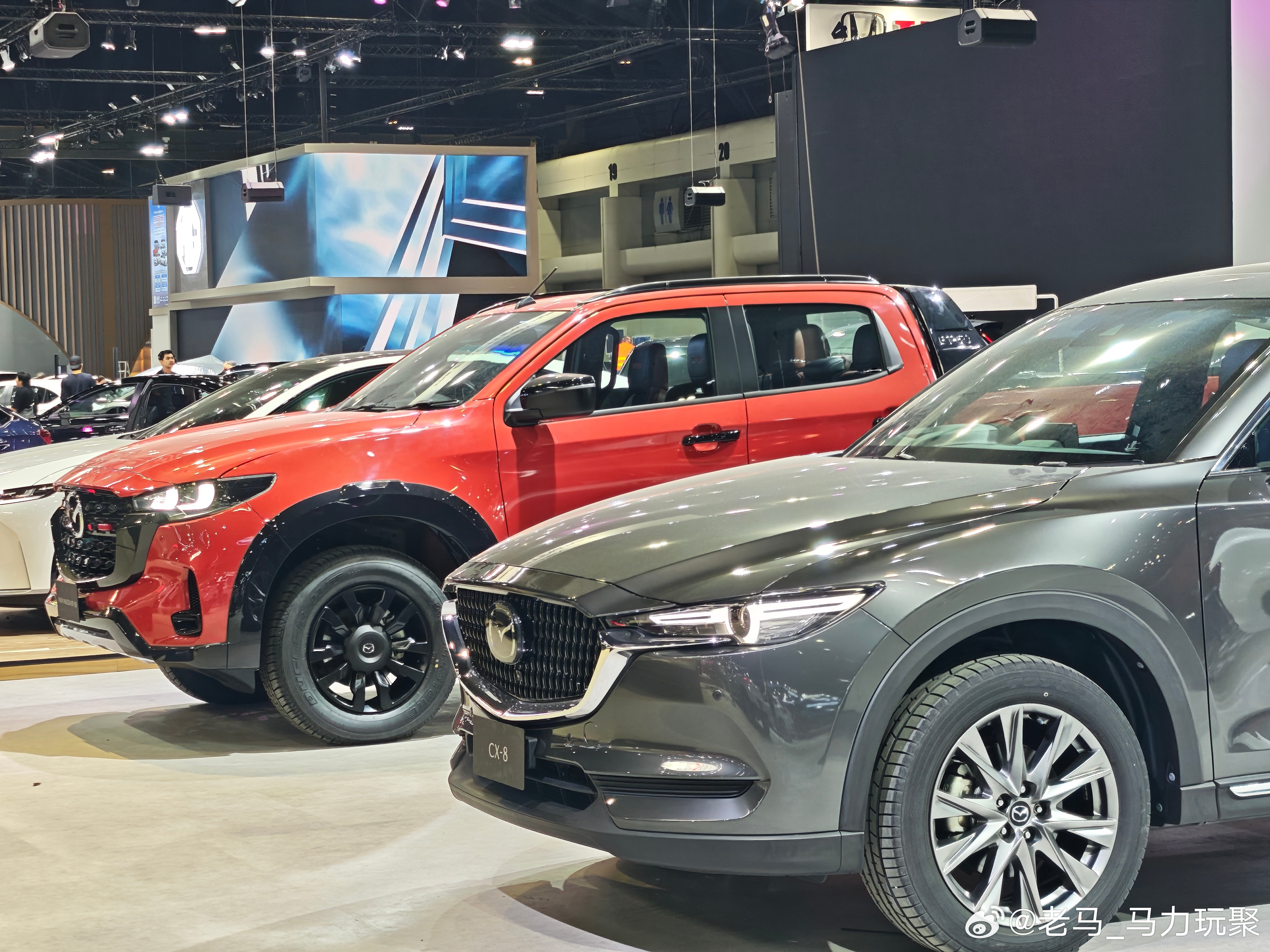 马力玩聚老马在路上 2025年11月泰国曼谷车展马自达展台,基本都是熟悉的车型不过皮卡车型国内应该不怎么见还有国内未更新的新款马自达2而且马自达直接把国内的EZ6左舵车搬过来几台展示想看看反响如何