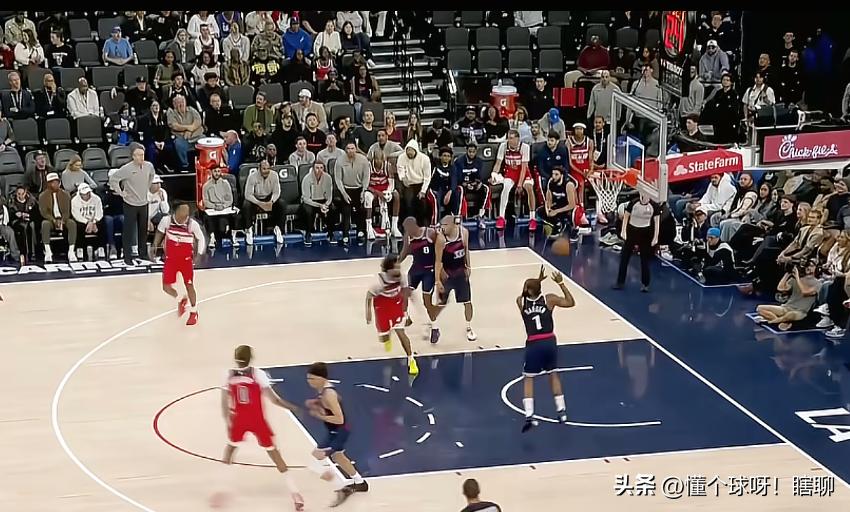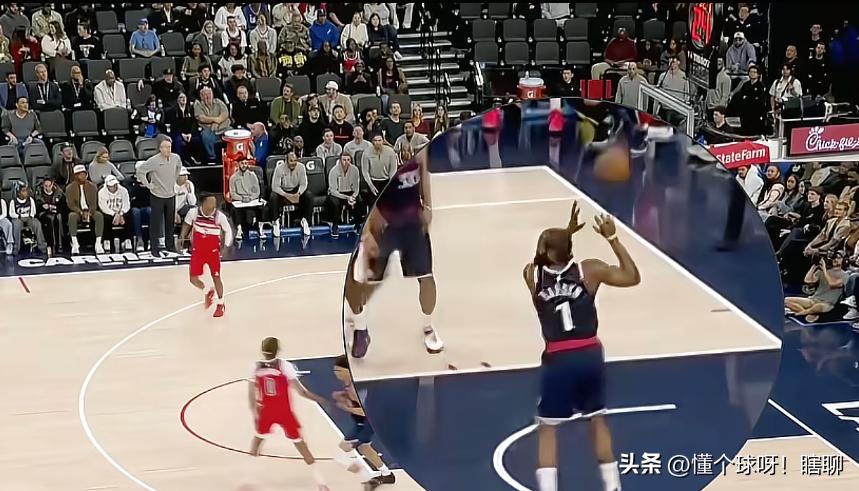 哈登精准判断篮板落点,篮球还没有落到手就先观察队友,这样球到手以后就直接传,不浪费一点时间,看到已经要跑到篮底下的大洛,直接一个长传球,越过中间的两个防守球员,篮球精准的落到大洛手中,大洛也轻松完成篮下得分 哈登这一手简直就是出神入化,相信大家也经常看到哈登这样精彩的助攻,只要跟哈登搭档的中锋就会有很多机会,联盟有几个人能做到这一点