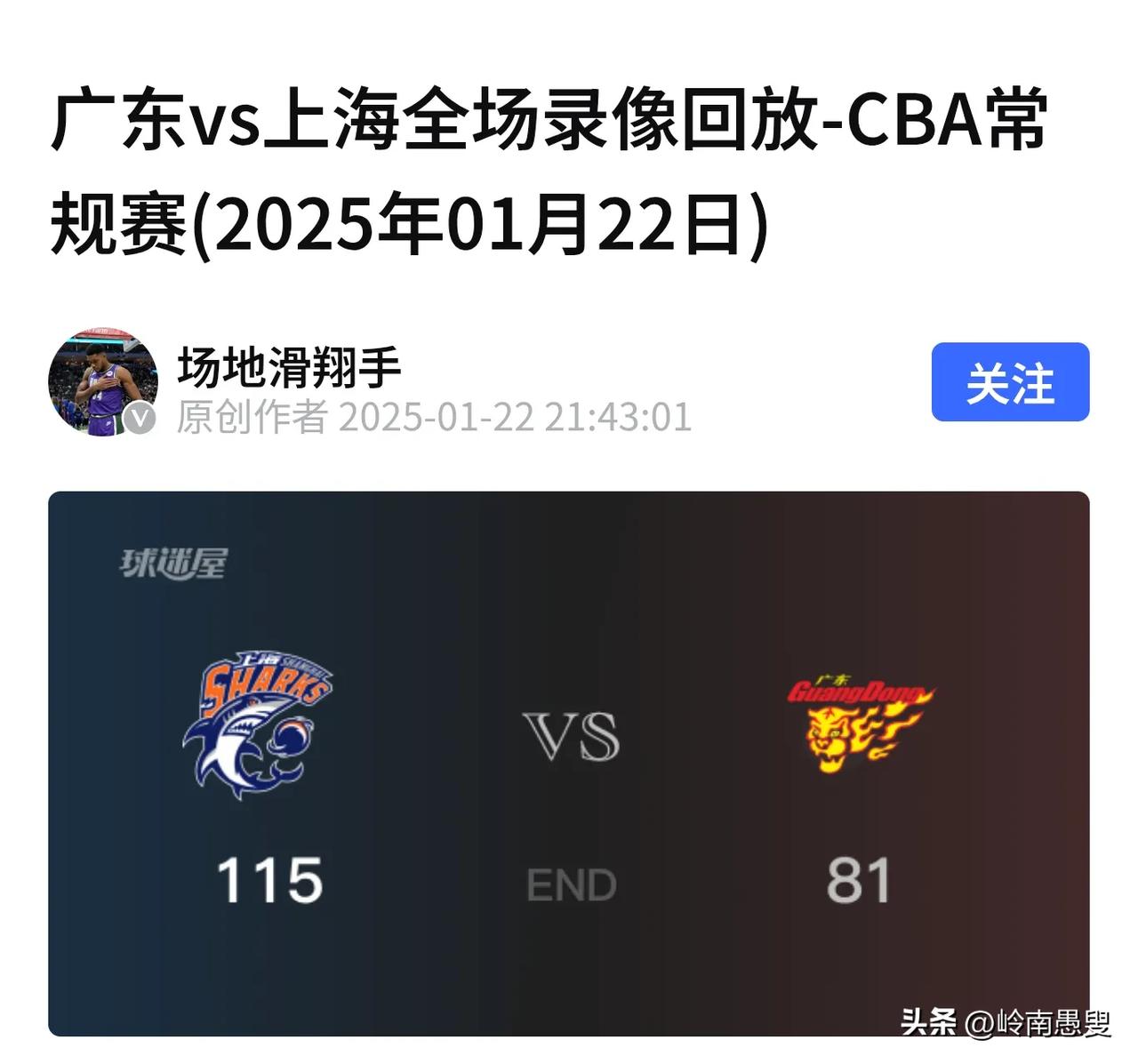 是广东队黔驴技穷,还是杜锋在故技重演? 令人期待的粤沪大战跟万众瞩目的京粤大战一样,成为百无聊赖的一场比赛,广东队73:113溃败于作客的上海队。 这是一场令球百思而不得其解的比赛: 究竟广东队是一支打不了高端局的伪强队,还是广东队还未进入高端局的节奏? 记得上赛季常规赛上海作客广东,以124:91打得广东队丢盔弃甲,回到主场又以115:81打得广东队溃不成军,可到季后赛,广东队却以2:1淘汰了上海队。这一次广东队又是在自己的主场被上海队打得一败涂地,是不是杜锋又在故技重演?