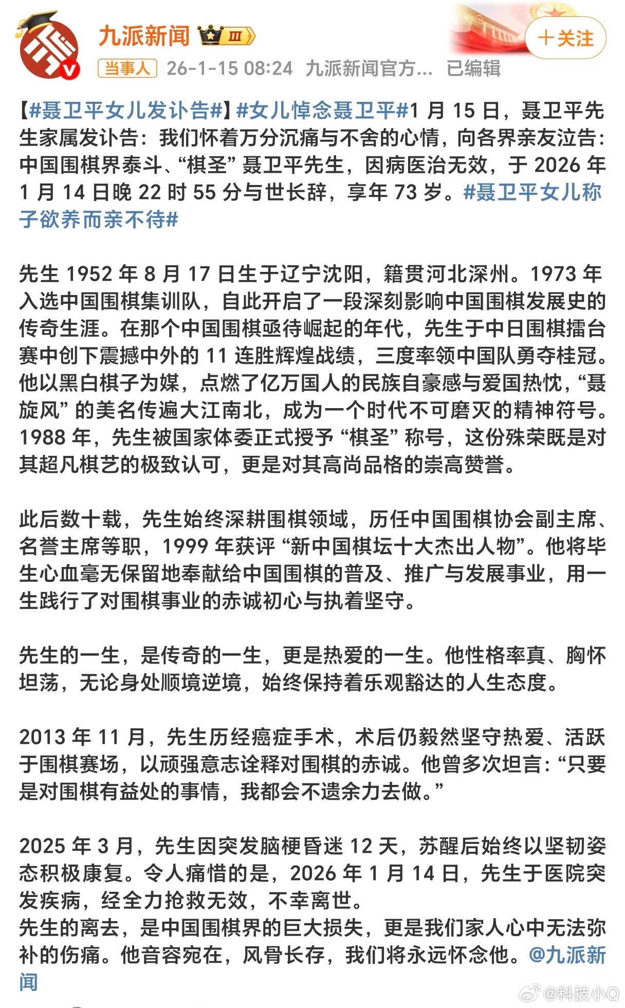 聂卫平逝世先生,棋圣!!!中日围棋擂台赛中创下震撼中外的 11 连胜辉煌战绩,三度率领中国队勇夺桂冠。一路走到!