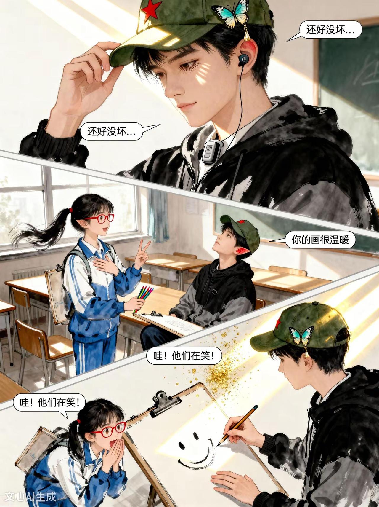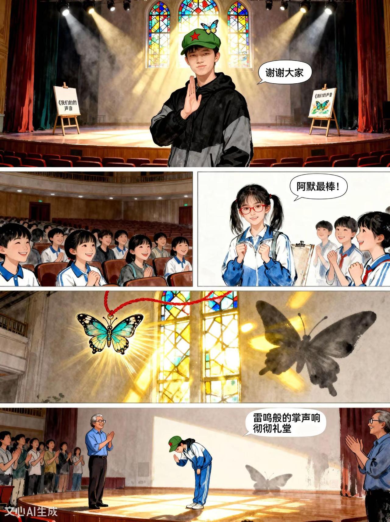 《风中的蝴蝶》第6话。故事梗概: 听障少年阿默在转学生林小满的鼓励下,用画笔记录无声的温暖, 克服恐惧创作《我们的声音》参赛,最终在颁奖台上以手语传递力量,实现自 我成长的故事。热门 创作者扶持计划 动画