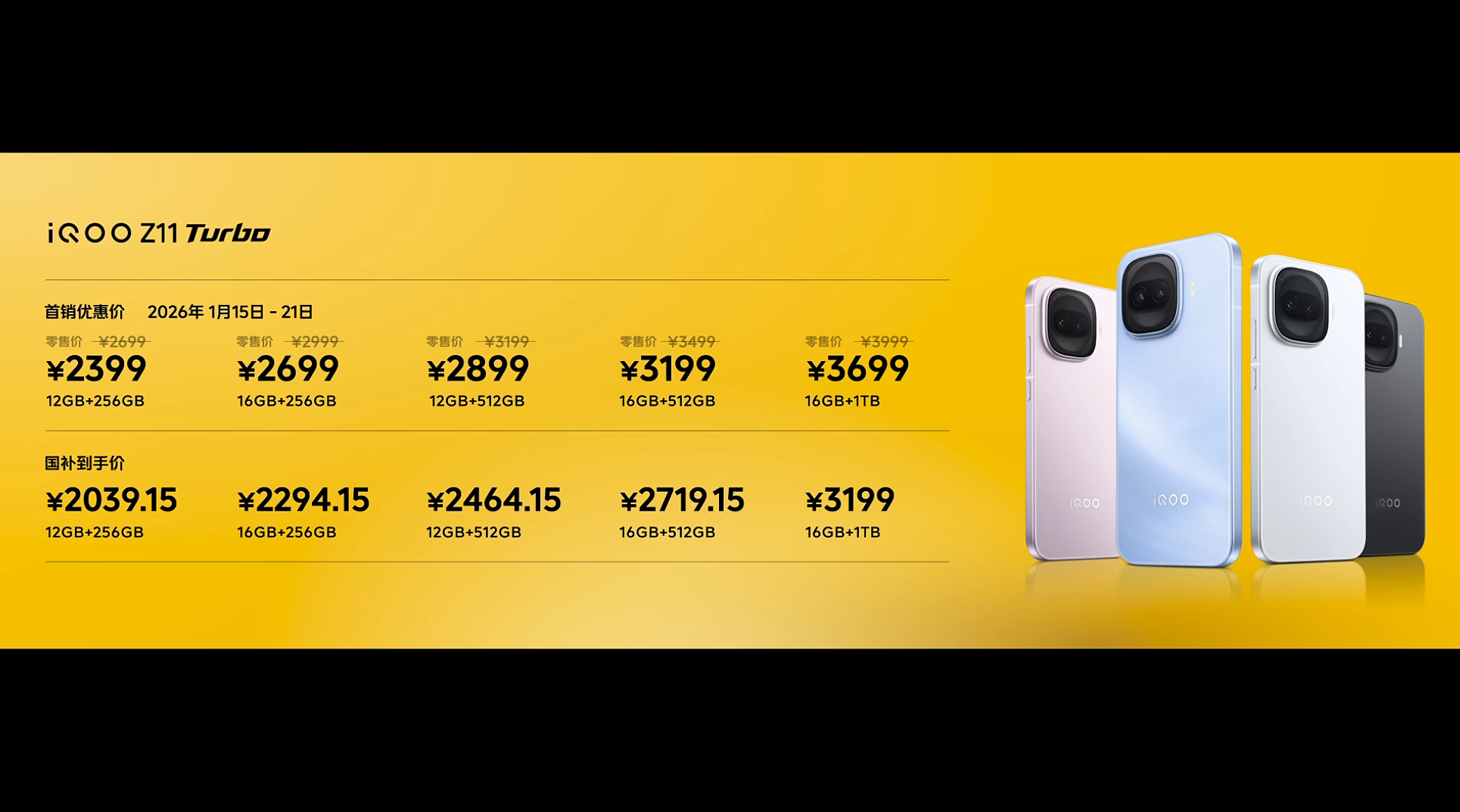 iQOO Z11 Turbo 售价出来了,首销2399元起,国补之后2039元起