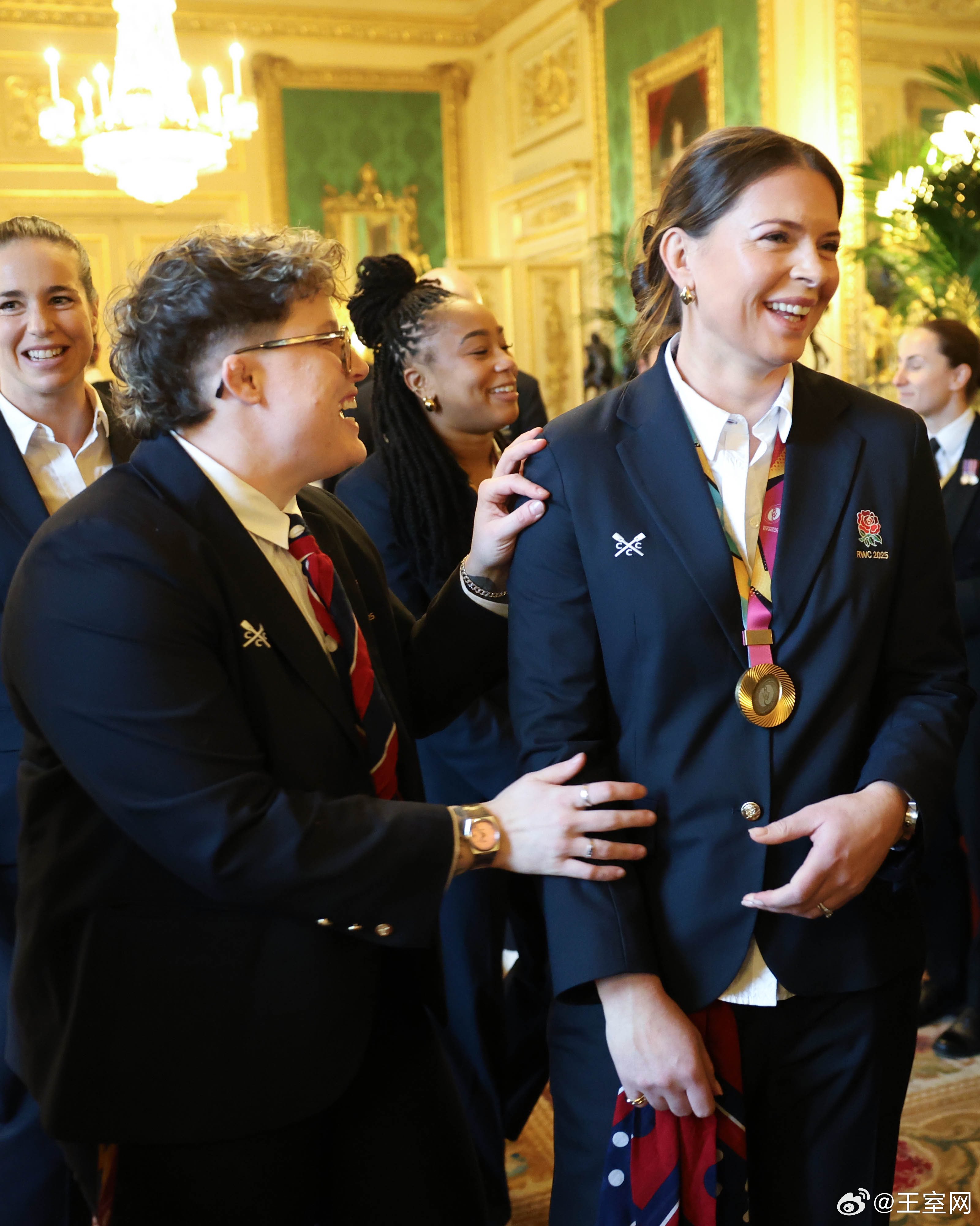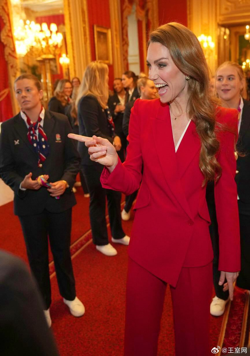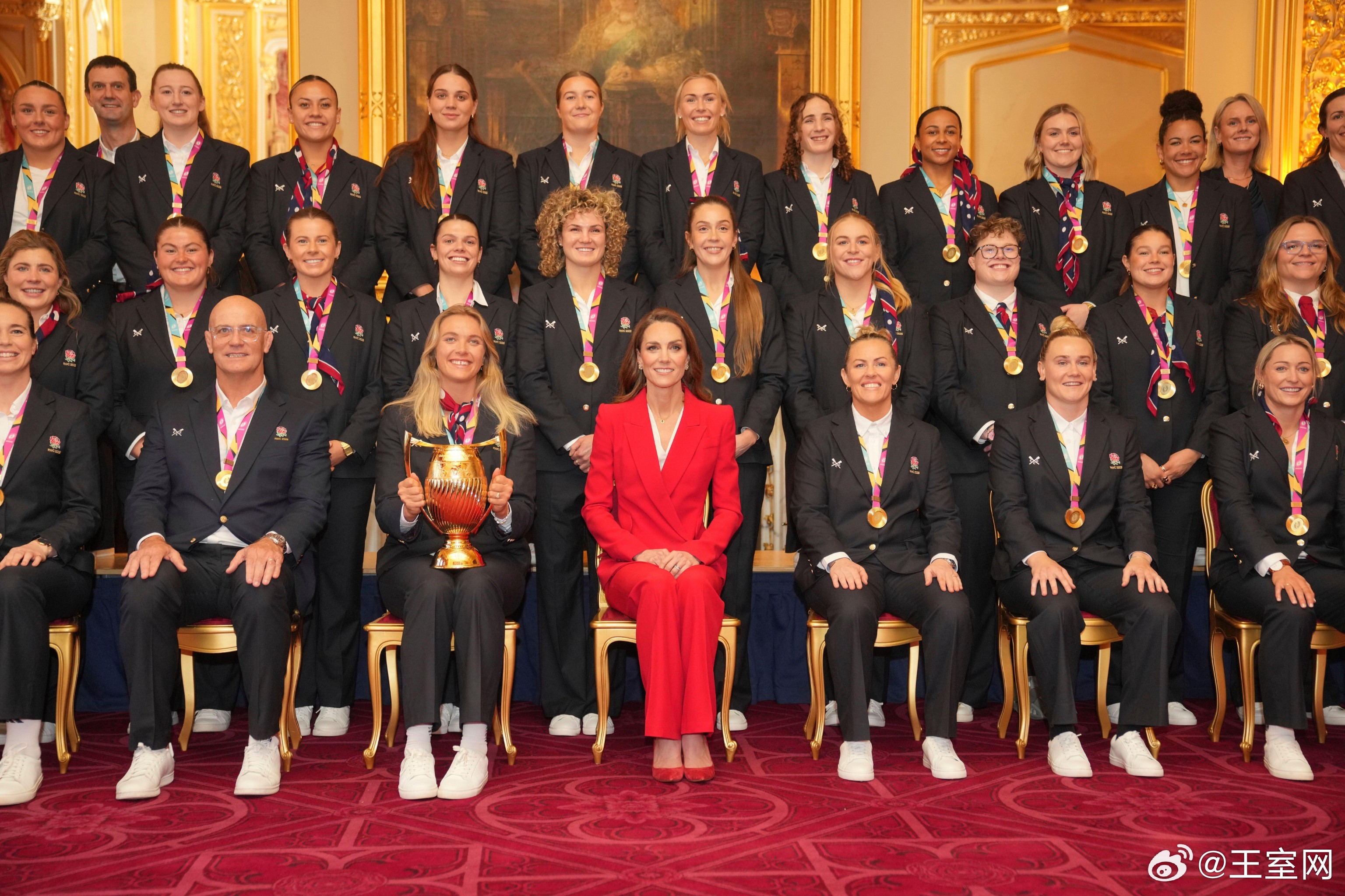 英国王室 🇬🇧1月15日,威尔士王妃凯瑟琳作为橄榄球联盟的赞助人,在温莎城堡为英格兰女子橄榄球队举办招待会。庆祝她们在2025年9月赢得世界杯冠军。🏉🏆🏅世界各国王室凯特王妃 套装来自亚历山大·麦昆。