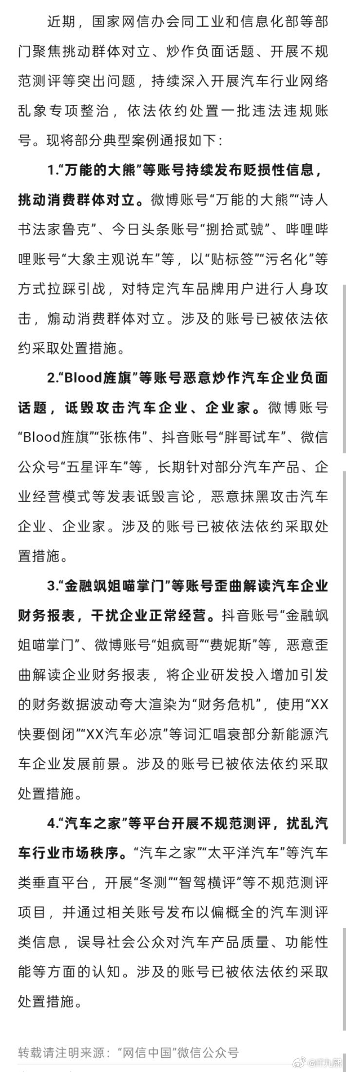 汽车行业网络乱象整治又有一批汽车自媒体账号被点名处理了。万能的大熊 大象说车 Blood旌旗 汽车之家... 感觉汽车博主已经成高危职业了