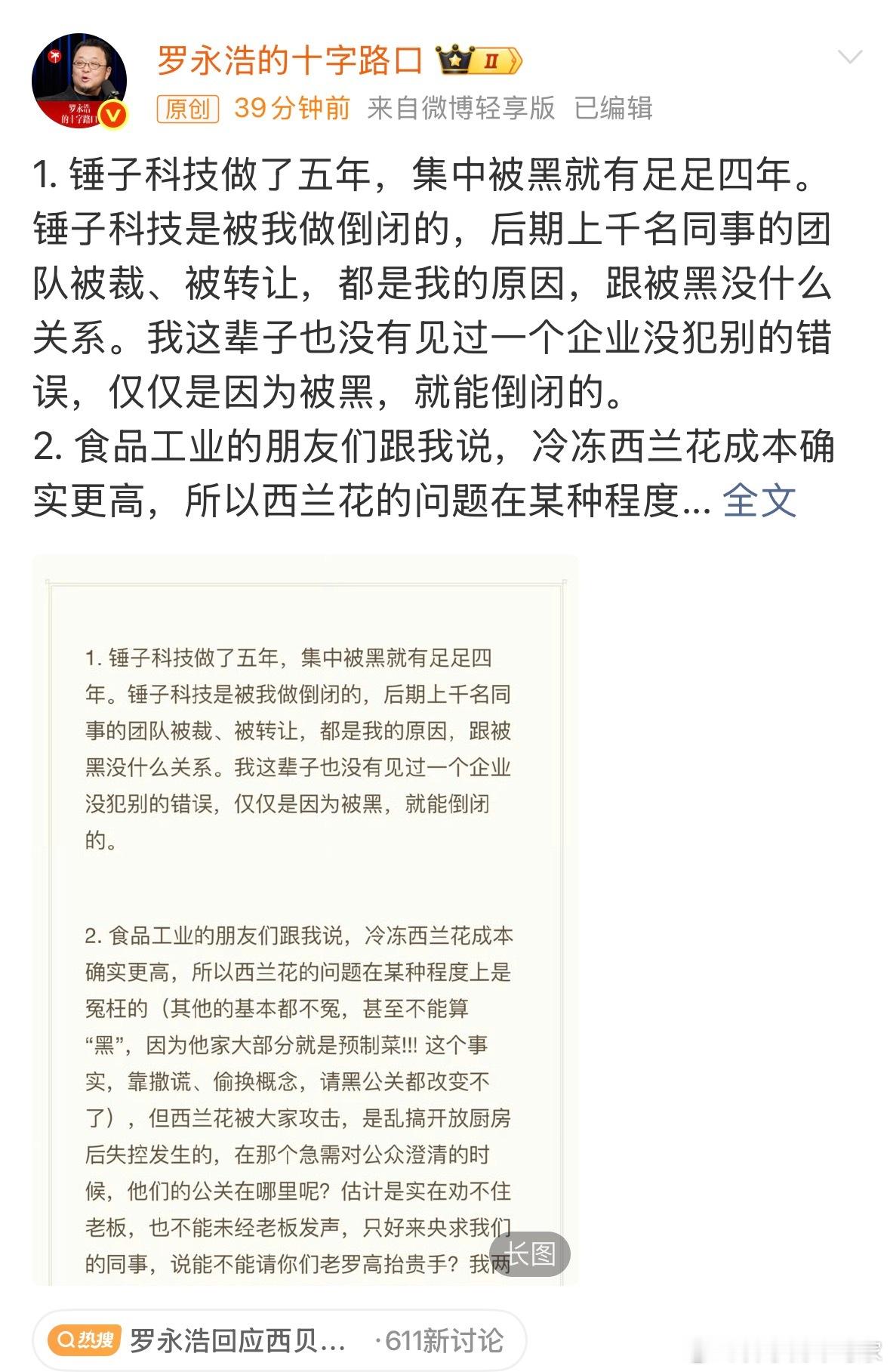 老罗又回应,其实我想知道这件事从9.10日到现在128天了,啥时候是个头?说实话一个舆论事件能持续发酵这么久,也是创造历史了….老罗造过手机,那时候经常被黑,还创造了很多的历史名梗,但是在发布会上把黑他的话放上去拿来自嘲,也就他敢这样做了哈罗永浩回应西贝闭店