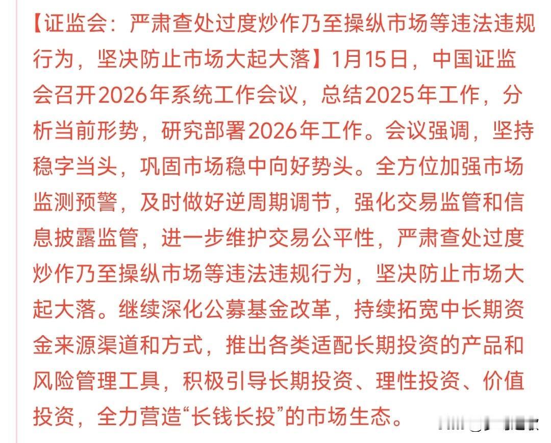 来了,来了,证监会在A股收盘发消息了 证监会:禁止股票大起大落。 很明显,这是说最近那些连板的个股,仅仅几个交易日就能翻倍,目前很多个股都出现了停牌或者收到了警示函的情况,主要就是防止市场过热的行为。 目前村里一直说的就是要慢牛行情,很多个股几天翻倍就会把板块激活,从而带动大盘的疯狂上涨,明显这里说的就是最近这种疯牛行情,要进行市场的降温。 现在A股周五收盘后已经连跌三天了,已经跌到了4100点以下,降温的效果很明显,现在就看慢牛行情接下来怎么走了。