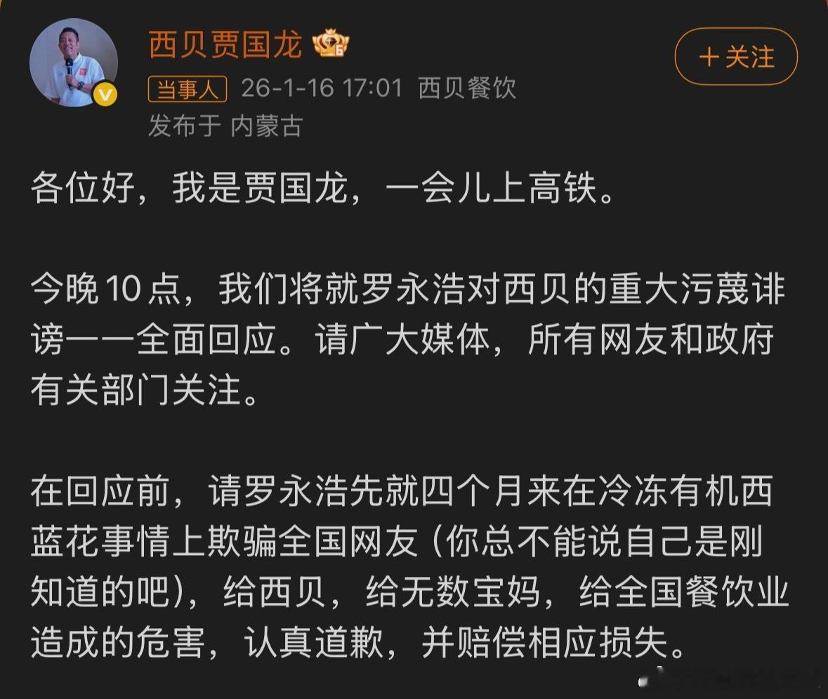 好家伙,还来?前面铺垫了一周,不会是整波大的吧,贾老板在周五晚上流量最大的全面回应,看来是真的准备充足,微博服务器要准备好啊,现象级舆论,流量爆表我只想西贝好好活下去,毕竟就业是最大的民生……贾国龙今晚10点全面回应