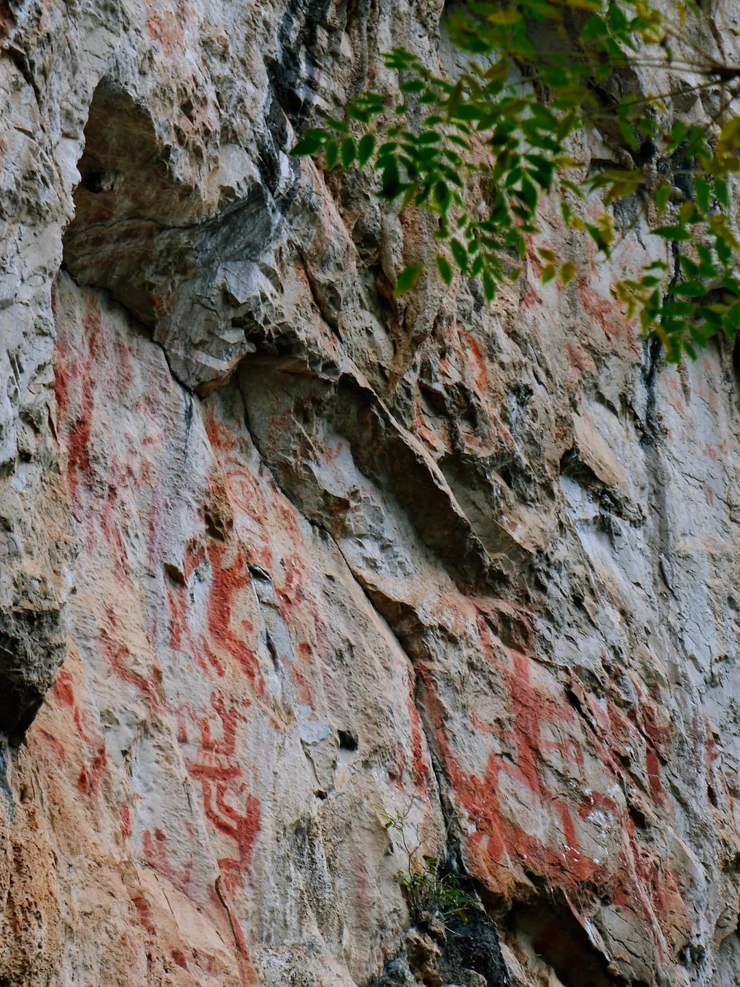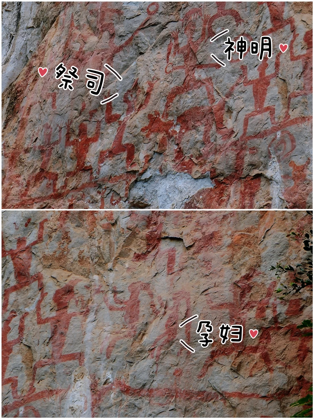 选择向内倾斜的岩壁作画,天然形成保护,到现在都依然鲜艳清晰。