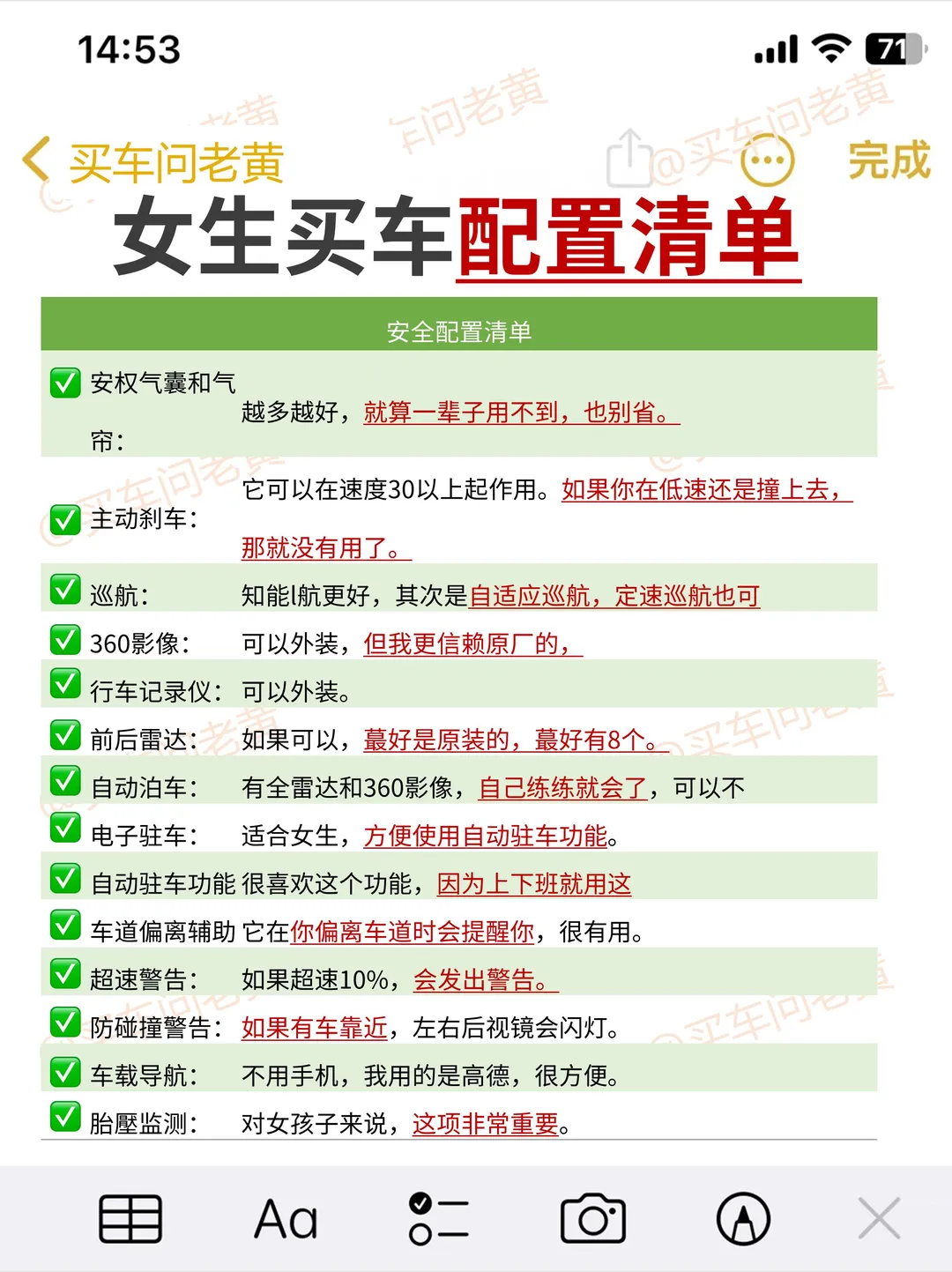 ✅图5"女生买车配置清单"