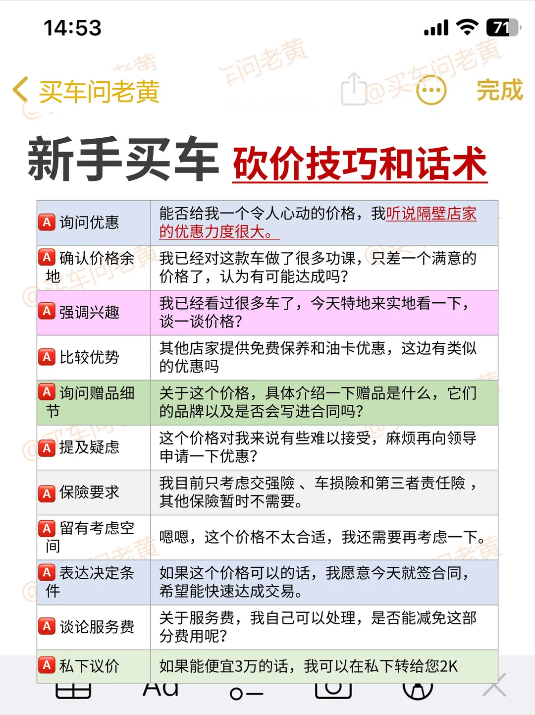 ✅图6"新手买车 砍价技巧和话术"