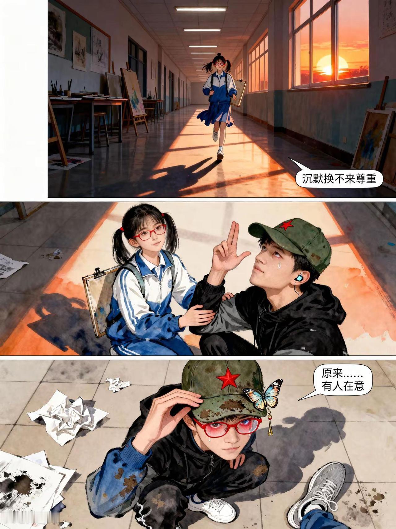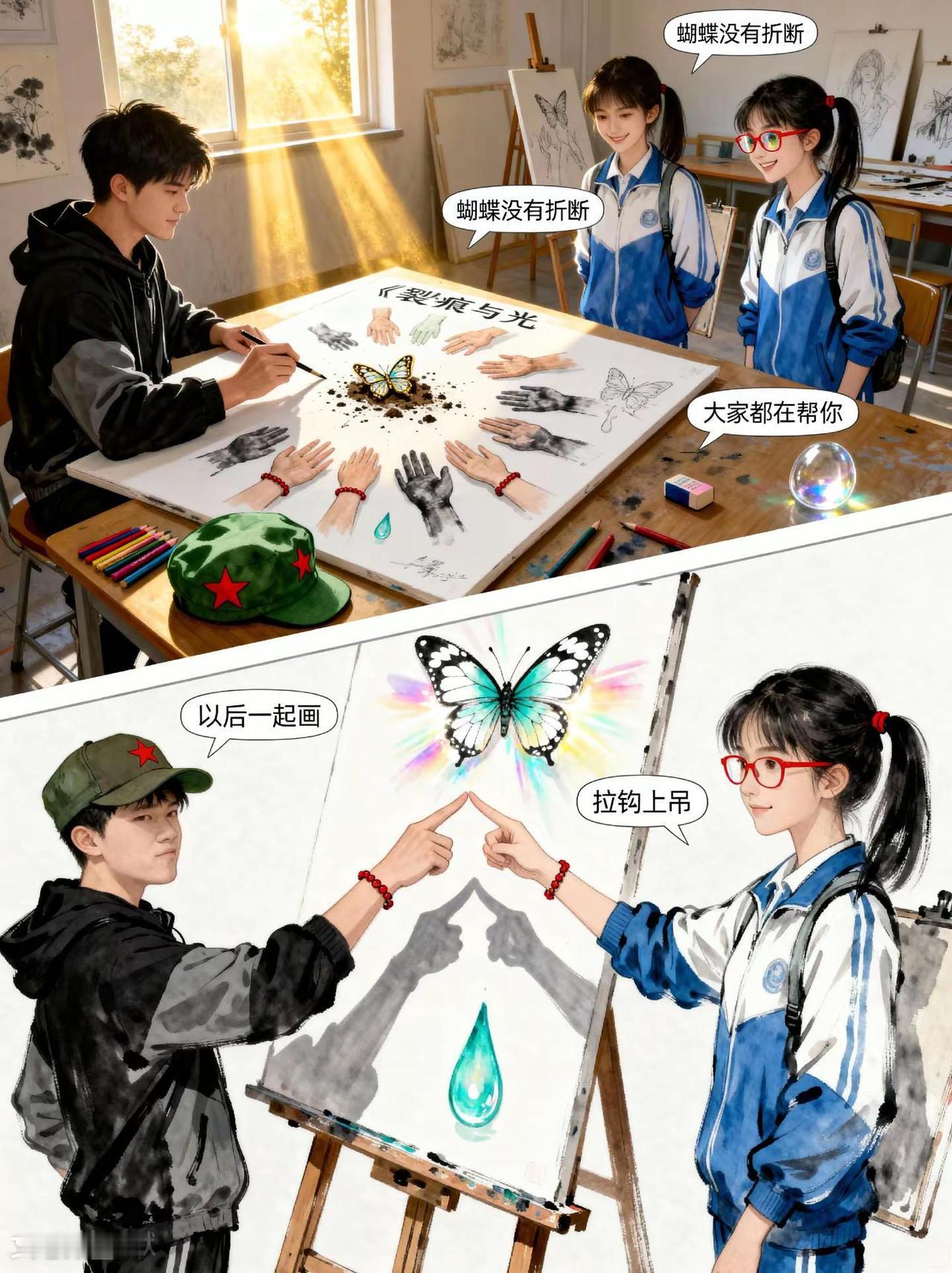 无声的守护者第7话。故事梗概:先天性耳聋少年阿默的画作遭同学破坏,精通手语的转学生林小满 鼓励他用证据捍卫尊严。两人携手让正义得到伸张,阿默更将经历绘成《裂痕 与光》,用画笔诠释无声世界的勇气与希望。上热搜 漫画 热点 绘画