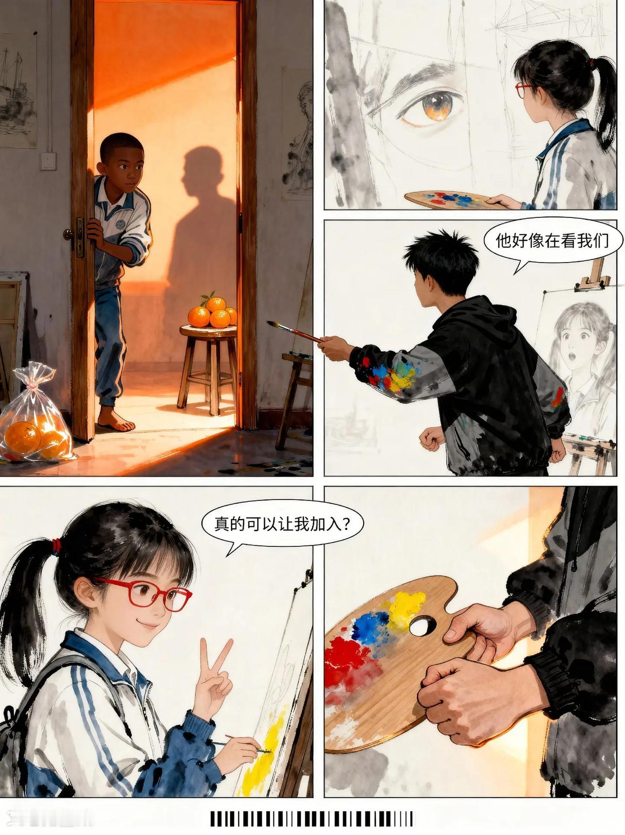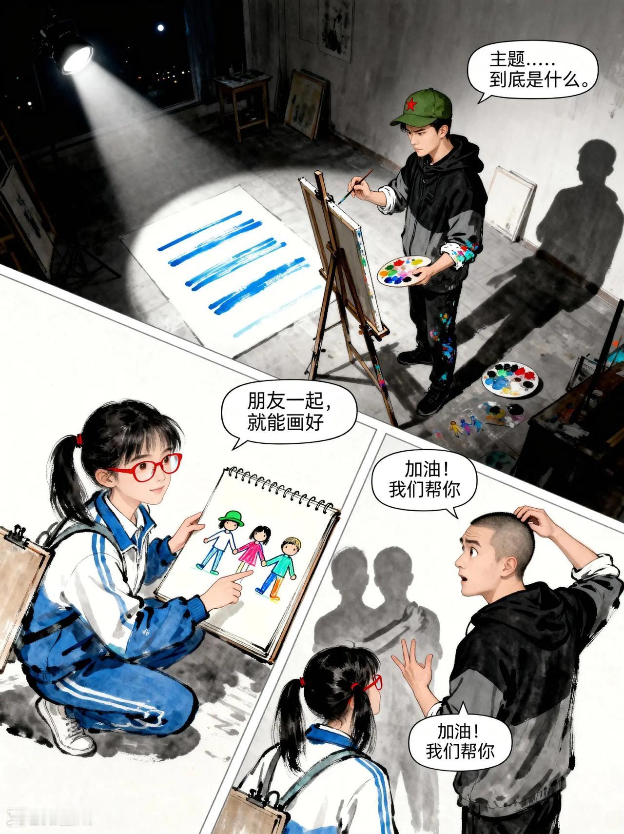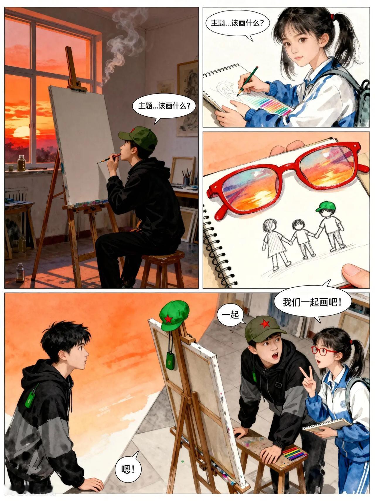 裂痕与光:画家向云端第9话。故事梗概:听障少年阿默与好友林小满、张强合作创作画作,克服创作瓶颈, 最终完成《云端的画笔》并在画展广受好评,展现友谊与梦想的力量。动画 残疾人 创作
